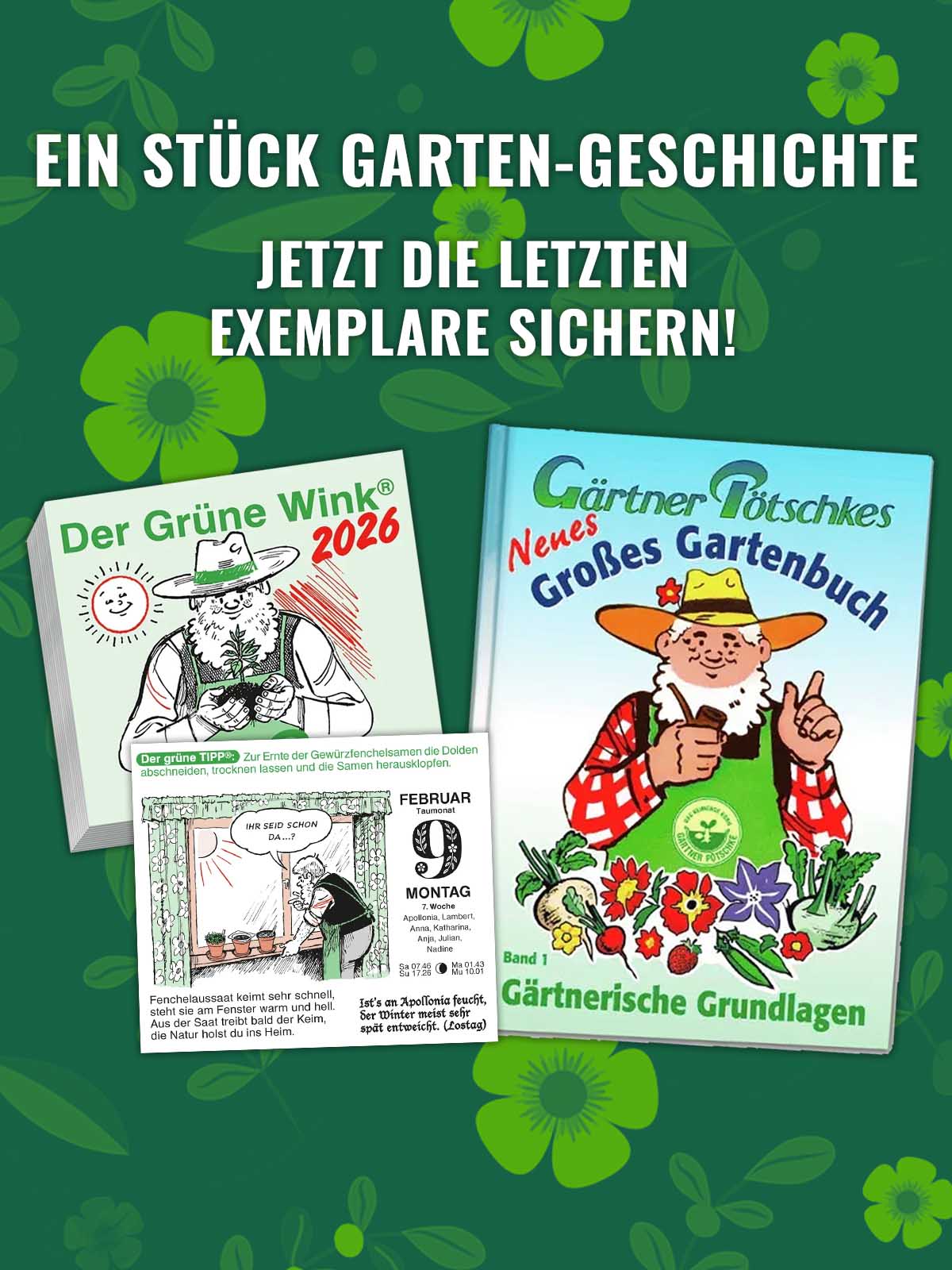 Seit Generationen stehen wir für Gartenliebe, Qualität, Verantwortung und Nähe zur Natur. Bewahren Sie sich ein Stück unserer langjährigen Geschichte und leben Sie die Werte des Gärtner Pötschkes weiter – in Ihrem Garten, in Ihrer Leidenschaft, in jeder neuen Pflanze und jedem Samen, den Sie pflanzen.