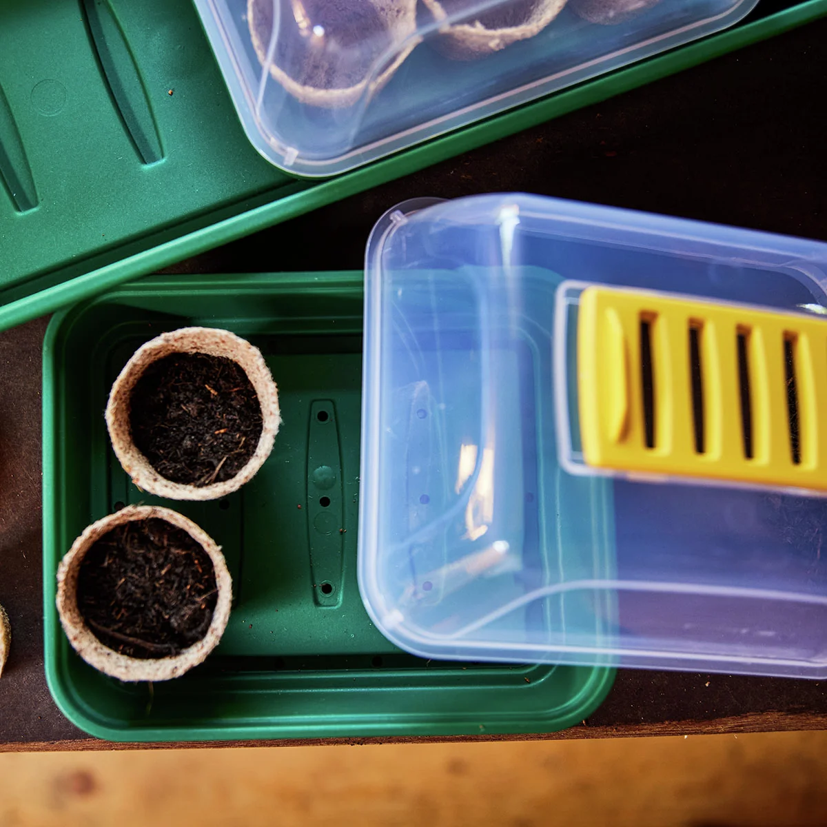 Mit diesem Zimmergewächshaus-Set wird die Anzucht von frischen Kräutern, Obst und Gemüse zum Kinderspiel.