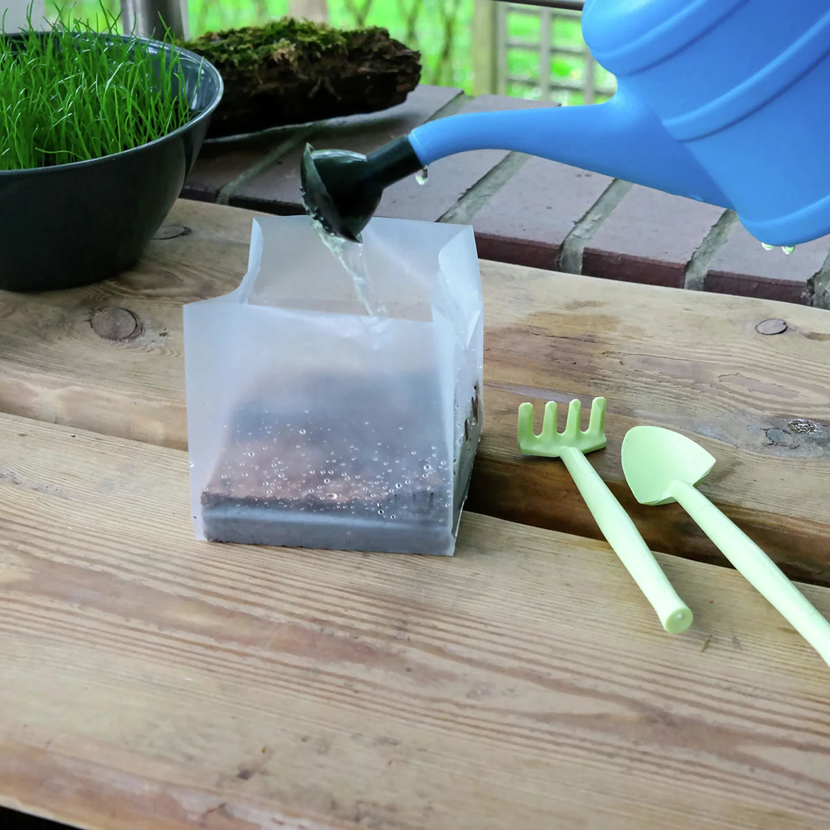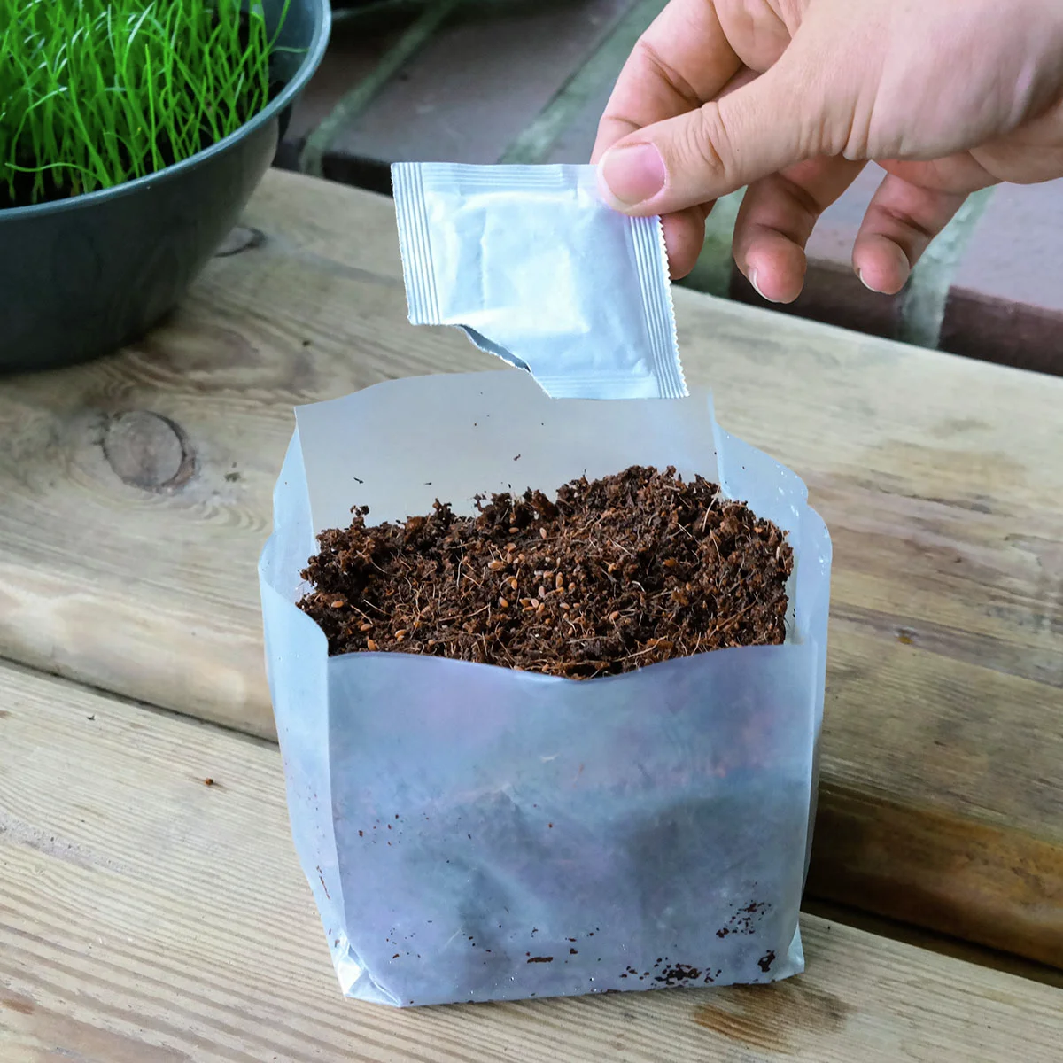 Unter Zugabe von ca. 300 ml Wasser entsteht im Handumdrehen 1 Liter Substrat sofort verfügbar für die Anzucht oder auch zum Umtopfen von Zimmerpflanzen oder Pflanzen auf Balkon oder Terrasse.