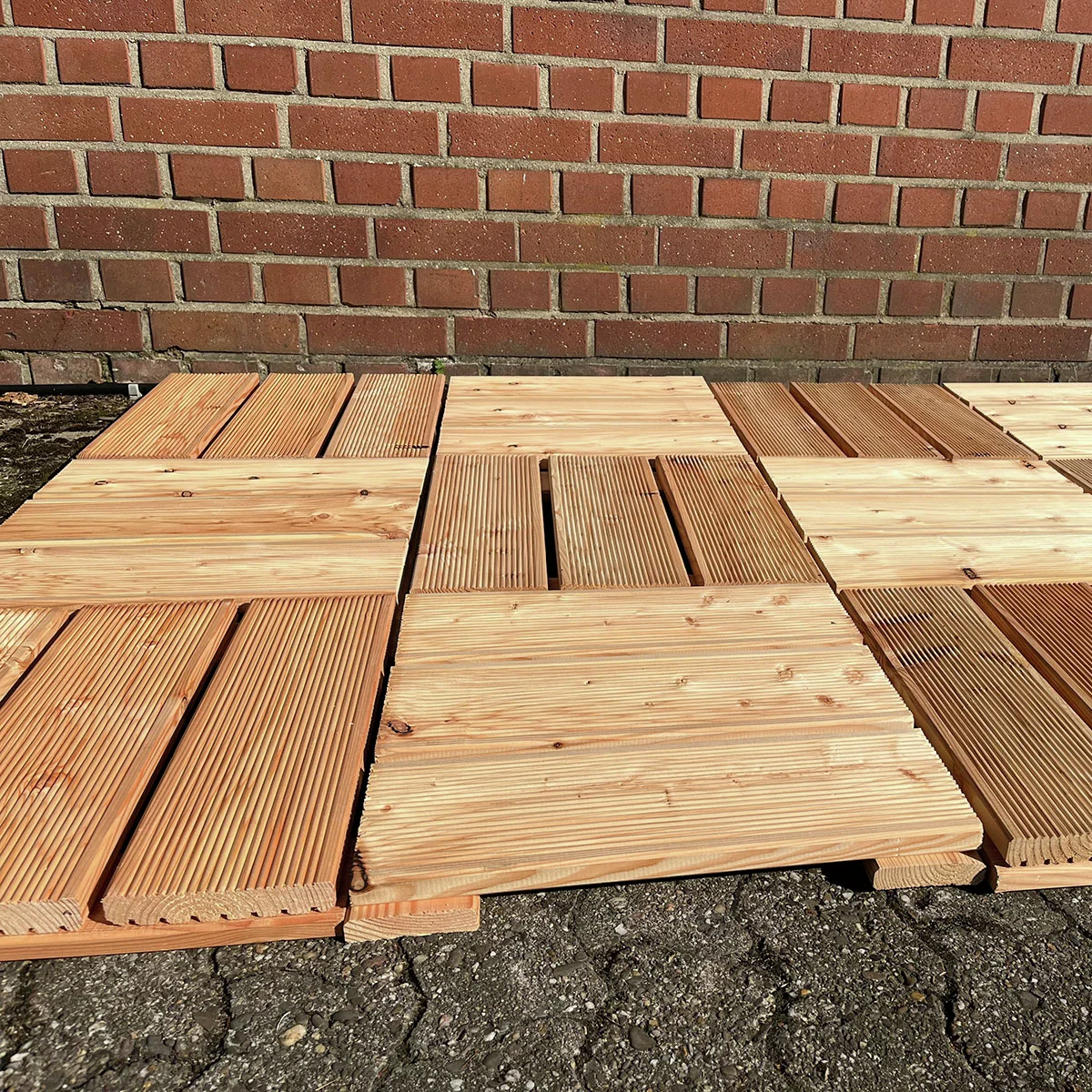 Holzfliese fein geriffelt Lärche 4er Set, 46,5x46,5 cm