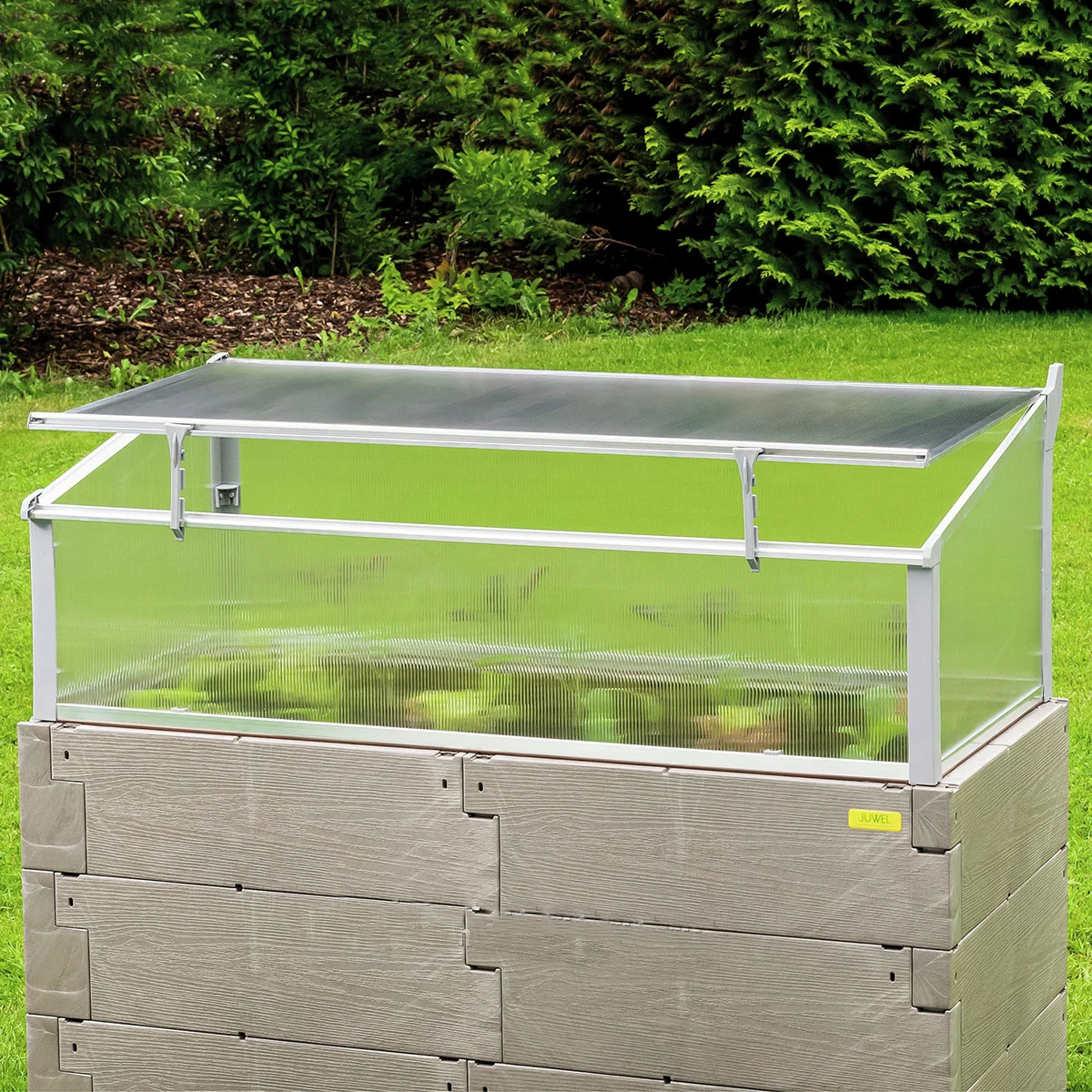 Ein Frühbeet funktioniert ganz ähnlich wie ein Gewächs- bzw. Treibhaus – nur eben in klein und mobil. Der Frühbeetkasten besteht meist aus Holz, Aluminium oder Kunststoff und wird mit einer Frühbeetfolie oder besser isolierenden und hochwertigen Hohlkammerplatten aus Polycarbonat bedeckt, dem so genannten Frühbeetaufsatz. Es reicht schon eine schwache Sonneneinstrahlung aus, um das Frühbeet aufzuheizen, da die von der Erde abgestrahlte Wärme von der Abdeckung im Beet gehalten wird. Das funktioniert so gut, dass es in einem Frühbeet schnell zum Hitzestau kommen kann. Sie sollten also immer darauf achten, dass die Temperatur im Frühbeet maximal 25 °C beträgt. Zur Regulierung der Temperatur hilft, das Frühbeet regelmäßig zu belüften. Besonders praktisch sind automatische, temperaturgesteuerte Fensterheber. So wachsen Ihre Jungpflanzen unter optimalen und geschützten Bedingungen heran und können, wenn es außerhalb des Frühbeets warm genug geworden ist, ins Gemüse- oder Blumenbeet gesetzt werden.