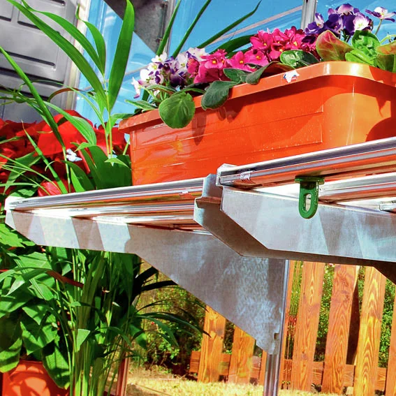 schafft dieses Gewächshaus-Regal aus Aluminium. Ideal als Ablage für Pflanz- sowie Anzuchttöpfe, Pflanzkästen und -schalen. Passend für alle angebotenen Gewächshäuser. Inklusive Montage-Kit und 3 Stück Gewächshausclips.