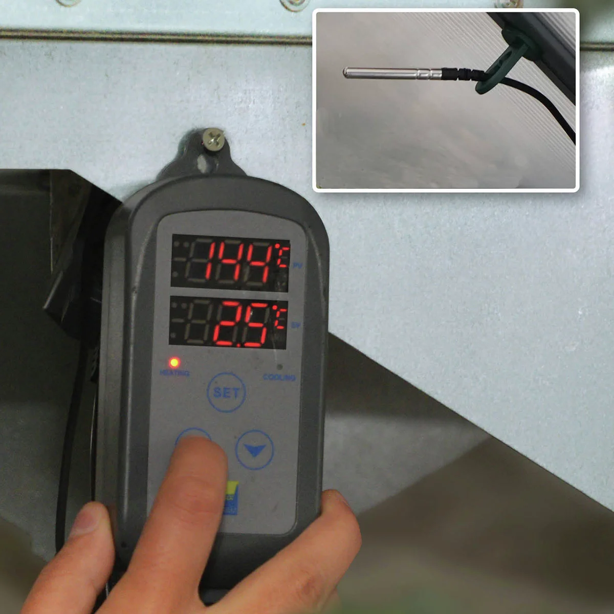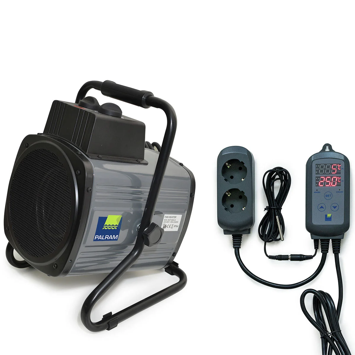 Bei den richtigen Temperaturen gedeihen Pflanzen im Gewächshaus das ganze Jahr über - selbst in frostigen Wintermonaten. Mit dieser tragbaren Gewächshausheizung von Palram (Leistung 2400 Watt) können Sie die Temperatur in Ihrem Gewächshaus problemlos regeln. Die Wunschtemperatur stellen Sie mit dem mitgelieferten Thermostat ganz einfach digital ein. Eine Warnfunktion gibt zudem ein Signal, sobald in Ihrem Gewächshaus zu hohe oder zu niedrige Temperaturen herrschen.