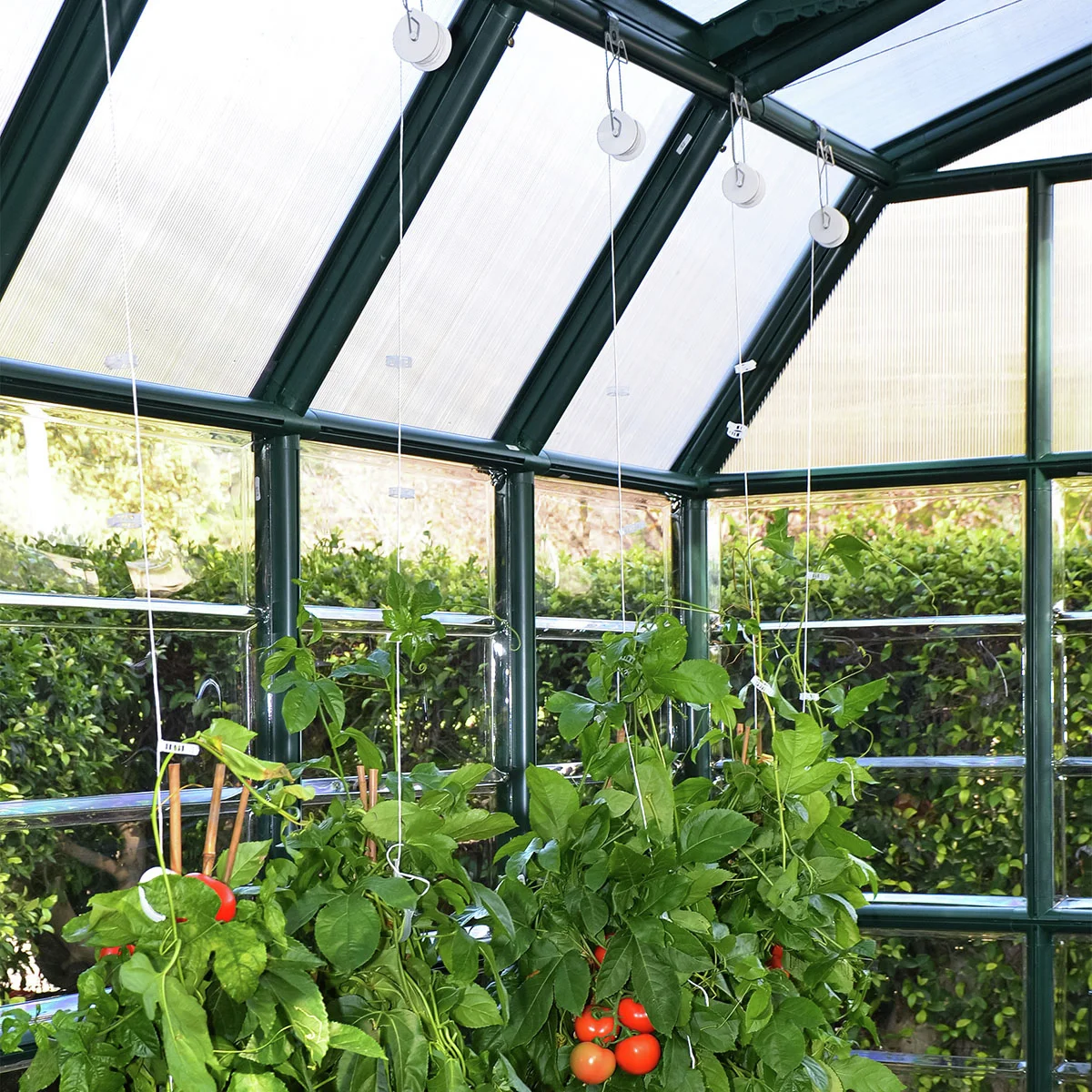 Die Zweige der Pflanze werden mit Klipsen an den Schnüren befestigt und ranken dann an diesen empor. Sehr einfache Montage mit speziellen Haltern.