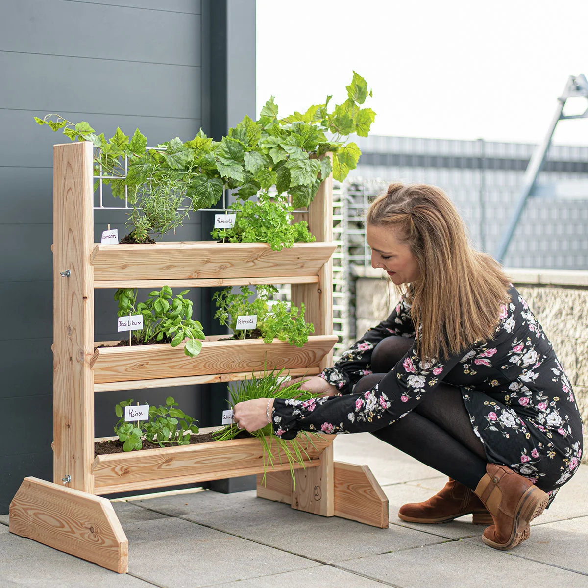 Was genau ist eigentlich ein Hochbeet? Was sind die Vorteile? Und was ist zu beachten? Nicht nur für Profis, sondern auch für ambitionierte Hobby-Gärtner gibt es jede Menge gute Gründe für ein Hochbeet. Der häufigste und wichtigste Grund ist die verbesserte Nährstoffversorgung, die Ihre Pflanzen Ihnen mit schnellerem Wuchs und deutlich höheren Ernteerträgen danken. Besonders wichtig ist das z.B., wenn Ihr Gartenboden eher nährstoffarm ist und Ihr Gemüse in einem normalen Flachbeet einfach nicht so richtig wachsen möchte. Düngen ist dann natürlich auch nicht mehr nötig – und das spart nicht nur Zeit, sondern auch jede Menge Geld. Der Einsatz von Pflanzenschutzmitteln kann ebenso reduziert werden. Denn Schnecken und andere Schädlinge, ja sogar Unkraut, insbesondere Wurzelunkraut, hat es deutlich schwerer, Ihren Pflanzen zu schaden. Zudem lassen sich Gartenabfälle und Kompost im Hochbeet sinnvoll nutzen und fördern sogar den Nährstoffgehalt. Denn erst durch den Zersetzungsprozess von Gartenabfällen und Kompost wird die hohe Nährstoffzufuhr garantiert. Als Nebenprodukt entsteht bei diesem Zersetzungsprozess Wärme – ein weiterer Vorteil, denn diese Wärme macht es möglich – ähnlich wie in einem Frühbeet – schon früher im Jahr zu säen oder Jungpflanzen zu setzen, ohne späte Fröste fürchten zu müssen. Ein weiteres und sehr wichtiges Argument für ein Hochbeet ist die Arbeitshöhe. Mit einer sehr angenehmen Höhe von bis zu 1,20 m können Sie sich nämlich ganz bequem und rückenschonend, ja sogar sitzend, um Ihre Schützlinge kümmern. Aber Hochbeete haben aber nicht nur einen praktischen Nutzen, sie eignen sich auch wunderbar als Designelement im Garten oder auf der Terrasse und bieten eine hohe gestalterische Flexibilität. Schließlich gibt es heute Hochbeete in allen erdenklichen Größen und Formen! Selbst beim Material gibt es eine große Auswahl – von verschiedenen Holzarten wie Lärche, Douglasie oder Weichhölzern über Metalle wie Blech oder Aluminium bis hin zu hochwertigen Kunststoffen und Stein. Da ist auch für Sie und Ihren Garten etwas dabei! Ein Hochbeet eignet sich übrigens auch hervorragend, um Ihre Lieblingspflanzen wie auf einem Podest ganz besonders in Szene zu setzen.Das Hochbeet im Detail