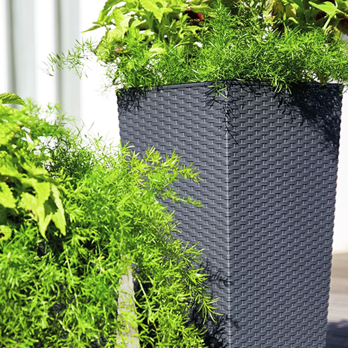 In diesem eleganten Pflanzgefäß finden Ihre Lieblingspflanze ein dekoratives Zuhause. Die edle Rattanoptik in zeitlosem Graphit macht Paris zu einem kombinationsstarken Hingucker für Balkon und Garten. Aus Kunststoff inklusive schwarzem Kunststoffeinsatz zum einfachen Bepflanzen.