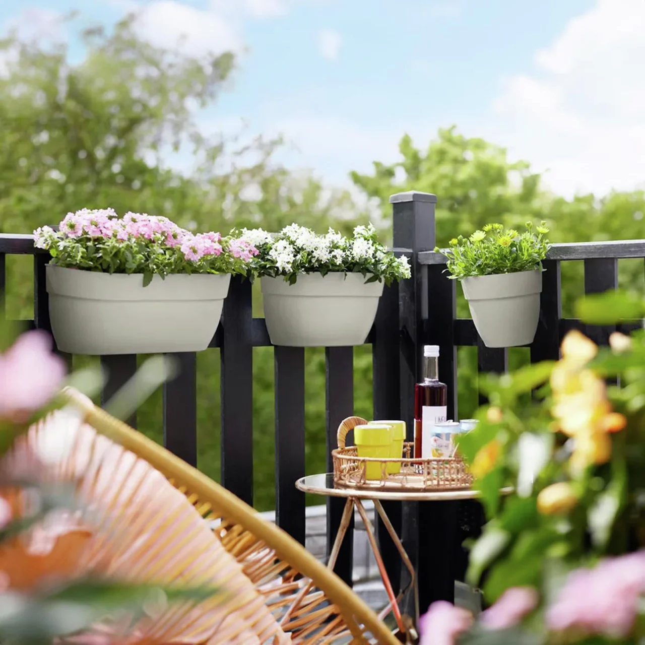 - Abgeflachte Rückseite für verbesserte Stabilität am Balkongeländer
