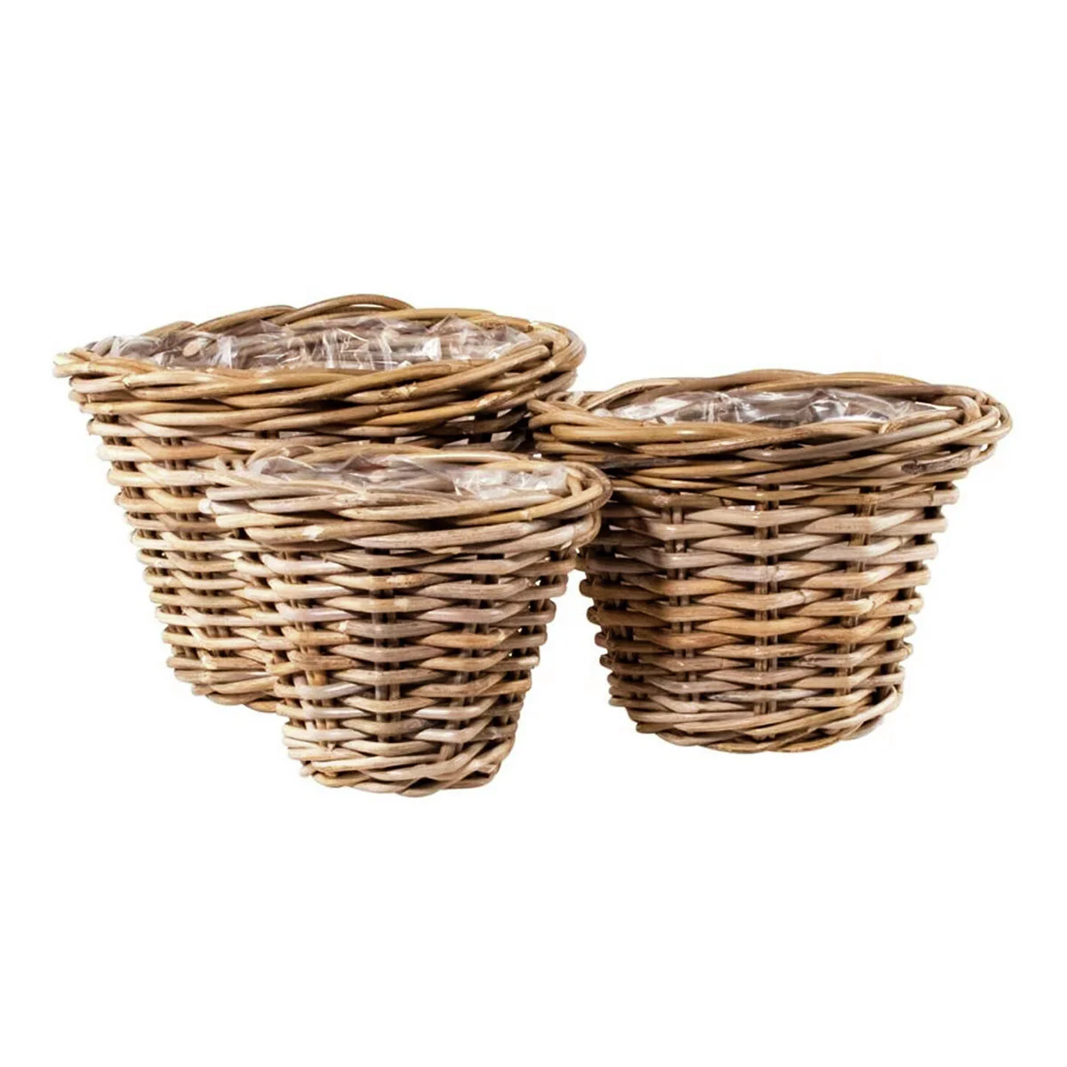Rattan-Pflanztopf, rund, 3er-Set, natur