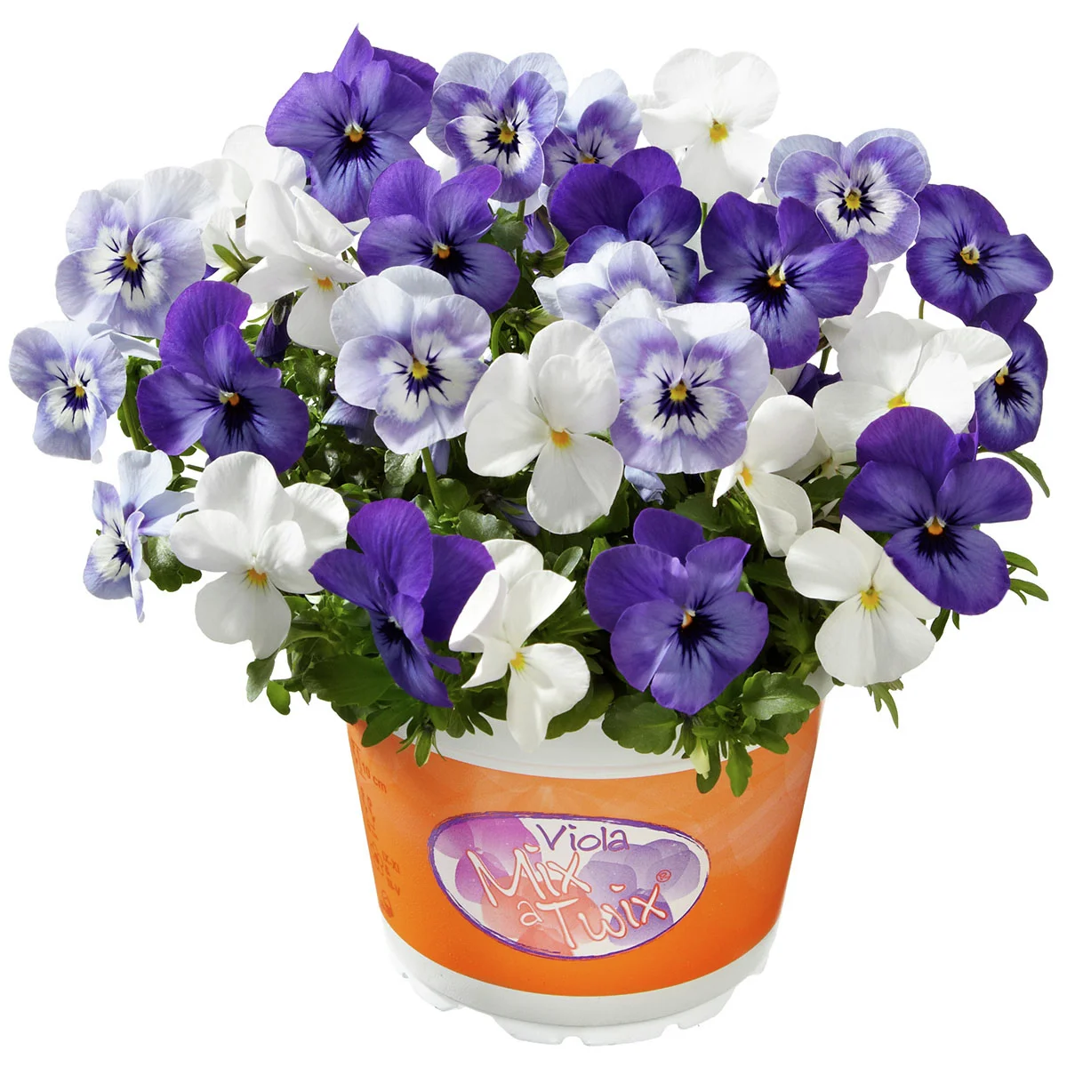 Mit dem Hornveilchen-Trio Mix a Twix® 'Blue Wave' erhalten Sie drei Farben in einer Pflanze - in einer blauen Farbwelt. Die Vielzahl der Farbkombinationen und die reichblütige Viola-Serie begeistert. Die Farben reichen von Blau, Flieder und Weiß, bis Hellblau und Gelb. Auf jeden Fall ist die Farbe Blau immer im Trio enthalten.