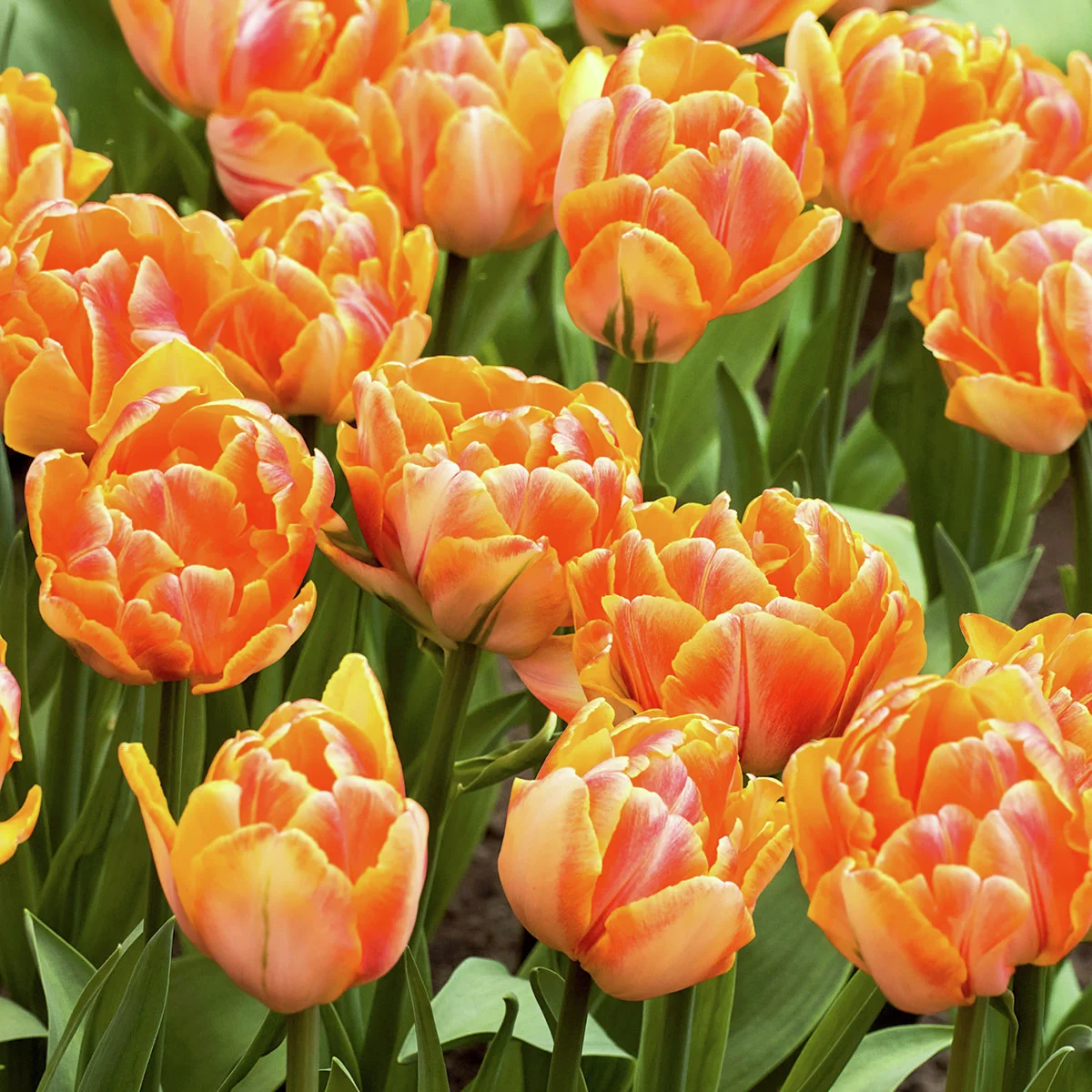 Welch eine Pracht, wenn die Tulpe ab April ihre herrlichen, lachsorangenen Blüten hervorbringt! Das Besondere: sie sind gefüllt und verbreiten einen angenehmen Duft. Über den dunkelgrünen, linealen Blättern kommen die Blüten besonders gut zur Geltung.