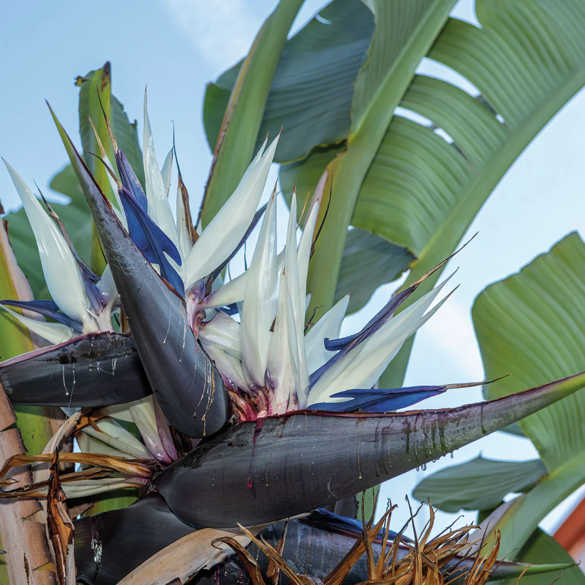 Die Baum-Strelitzie blüht im Alter von frühestens fünf Jahren das erste Mal.