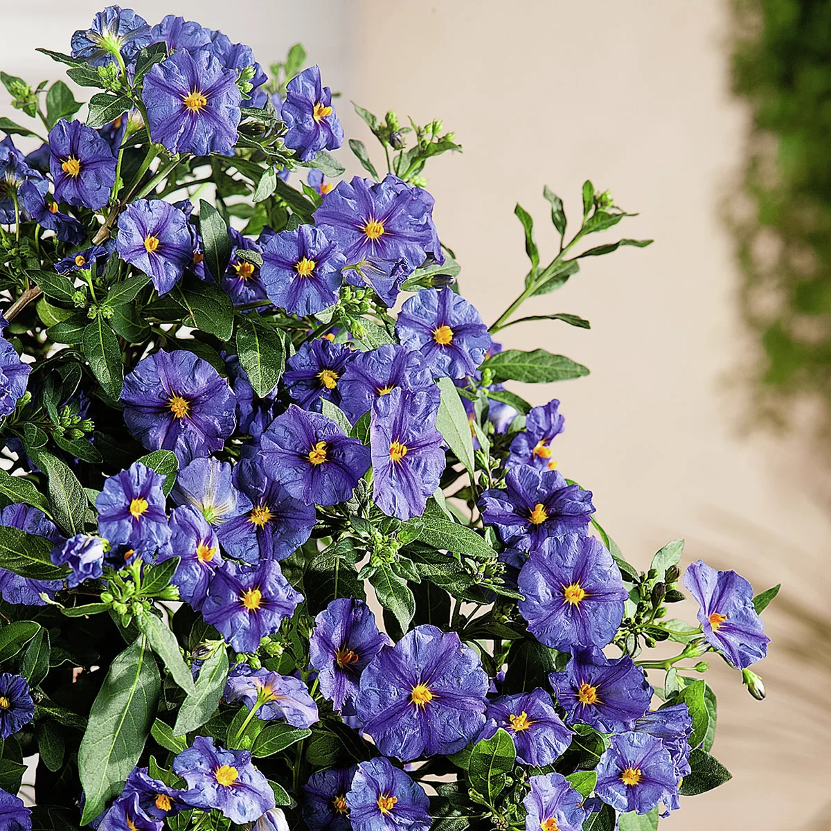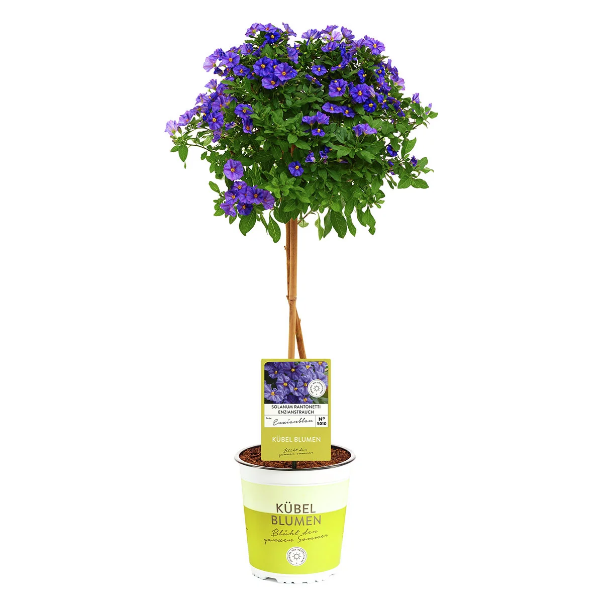 Die sternförmigen Blüten dieses Enzian-Stämmchen erinnern mit ihrer kleinen gelben Mitte tatsächlich an einen Sternenhimmel. Perfekt also für Ihre Terrasse oder den Balkon. Besonders schön ist, dass diese Kübelpflanze von April bis Oktober (bis zum ersten Frost!) blüht und Sie dabei nicht im Stich lässt. Sie liebt sonnig-halbschattige Standorte, wächst schnell und überwintert am besten im Haus. Dann zeigt es auch im nächsten Jahr wieder seine schönen Blüten!