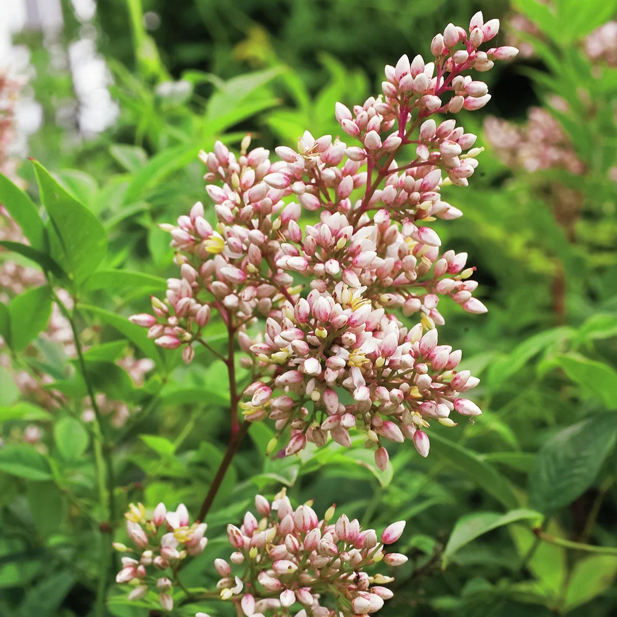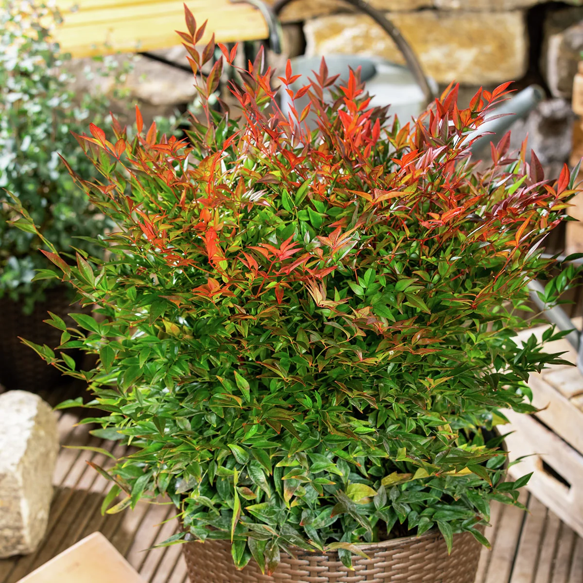 Ein wirklich vielseitiger Sommerblüher ist der Heilige Bambus. Das robuste Ziergehölz entwickelt attraktive weiße Blüten mit intensivem rotem Austrieb, der im Sommer frisch grün glänzt. Ein herrlicher Anblick auf Ihrem Balkon. Auch im Herbst gibt er sich zum Besten und präsentiert eine schöne Herbstfärbung. Durch die besondere Wuchsform und der dichten Belaubung findet das genügsame Gehölz nahezu überall einen Platz im Garten. Schnittmaßnahmen sind nicht notwendig, einzig und allein trockene Zweige sollten entfernt werden.