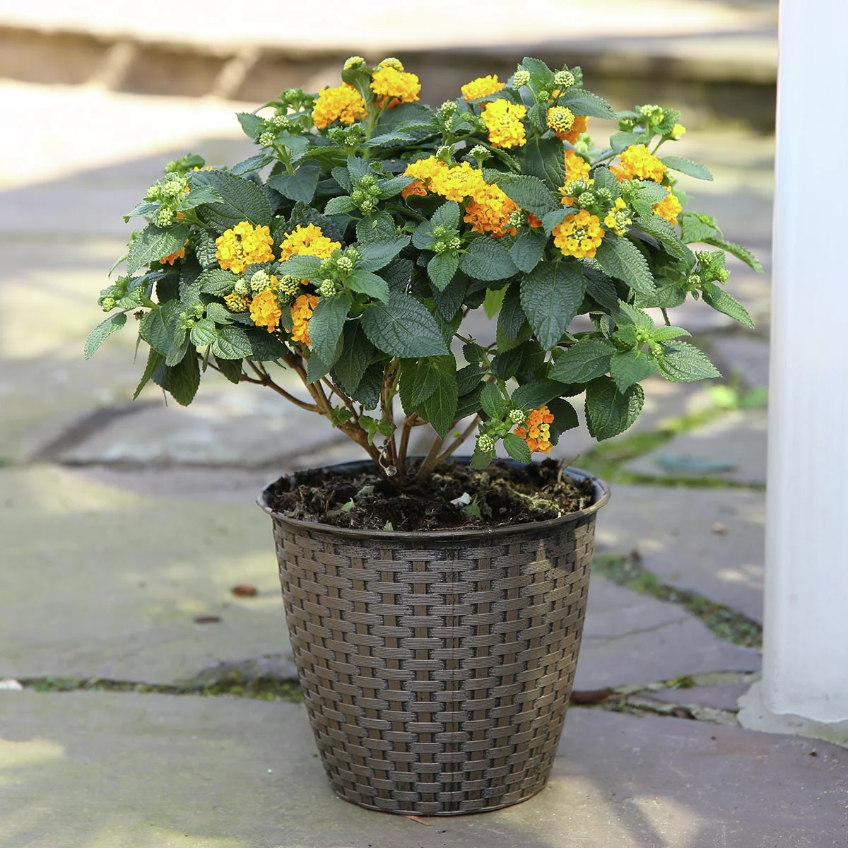 Dieser Wandelröschen-Busch blüht in wechselnden Blütenfarben von Gelb nach Orange und erfreut Sie außerdem mit nach Zitrus duftenden, gezackten Blättern. Es ist perfekt, um mediterranes Flair auf Balkon und Terrasse zu bringen. Es ist pflegeleicht, bevorzugt sonnige Standorte und möchte gerne im Haus überwintert werden. Extrem blühfreudig!