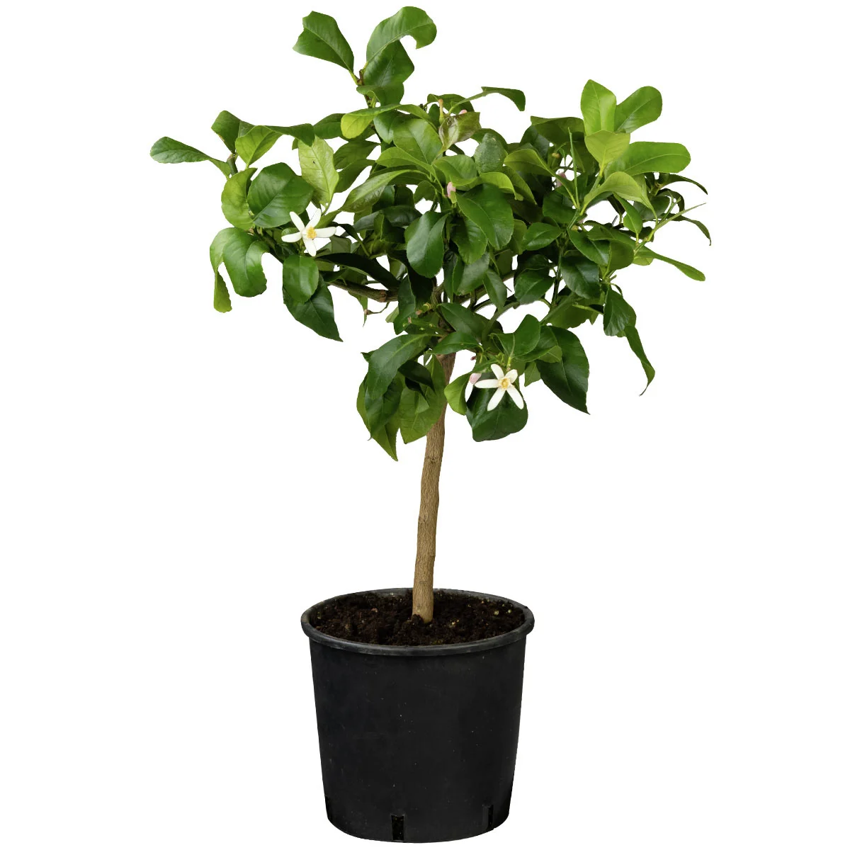 Der Zitronen-Stamm braucht ein sonniges und warmes Plätzchen, idealerweise in geschützter Südlage. Der Wurzelballen sollte stets feucht bleiben, die Oberfläche kann gerne etwas antrocknen bevor wieder gewässert wird. Auf Staunässe reagiert die Pflanze hingegen empfindlich. Kalkarmes Wasser ist zu empfehlen, da die Zitrone es gerne leicht sauer hat. Die beste Zeit zum Pflanzen und Umtopfen ist von April bis Juni, so können sie das duftende Stämmchen noch monatelang genießen, bevor es in sein Winterquartier umziehen muss. Als mediterranes Gehölz muss es frostfrei im Haus überwintern. Ideal ist dafür ein dunkler, kühler Raum mit konstanten 5–10 °C. In einem wärmeren Winterquartier braucht die Pflanze einen hellen Standort.
