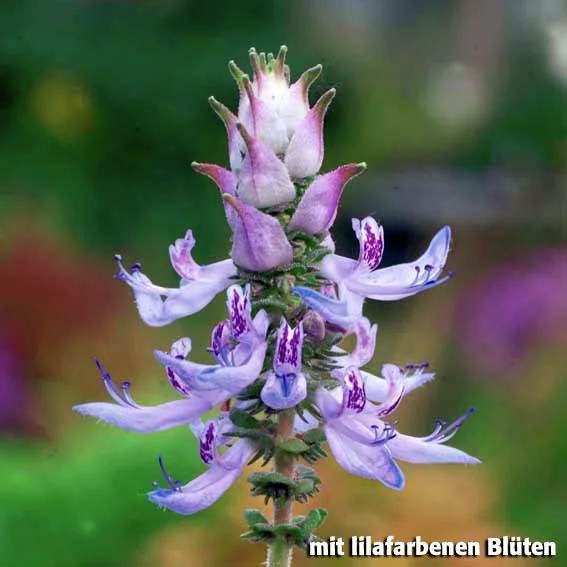 Die Verpiss-Dich-Pflanze, auch bekannt als Coleus canina Hybride, ist eine äußerst interessante und nützliche Pflanze für Gartenbesitzer. Diese robuste Pflanze erreicht eine Höhe von etwa 40 bis 50 cm und breitet sich ebenso weit aus. Ihre Blätter sind grau-grün gefärbt und haben eine leicht behaarte Oberfläche, die einen intensiven Geruch verströmt, der für Menschen kaum wahrnehmbar, aber für Tiere wie Katzen, Hunde und Kaninchen sehr unangenehm ist. Im Sommer schmückt sich die Pflanze mit blau-violetten Blüten, die in kleinen, unauffälligen Rispen erscheinen und das Erscheinungsbild der Pflanze zusätzlich aufwerten.