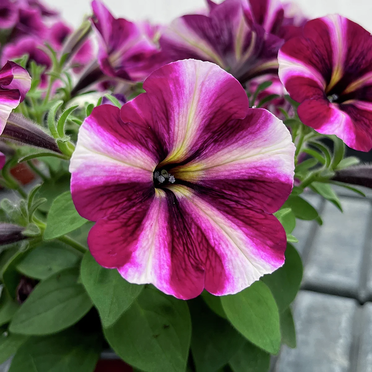 Für helle Freude sorgt die Hängepetunie Magenta Star mit ihrem ganz prächtigen zweifarbigen Blütenkleid, das sie über Monate hinweg stolz präsentiert. Die weißen insektenfreundlichen Trichterblüten sind von einem magentafarbenen Stern geschmückt und überziehen das lanzettliche Blattwerk in großer Anzahl. Mit ihrem hängenden Wuchs ist sie die Idealbesetzung für Ampeln und Kübel. Dabei lässt sie sich auch prima mit anderen Hängepetunien oder aufrecht wachsenden Sommerblumen kombinieren.