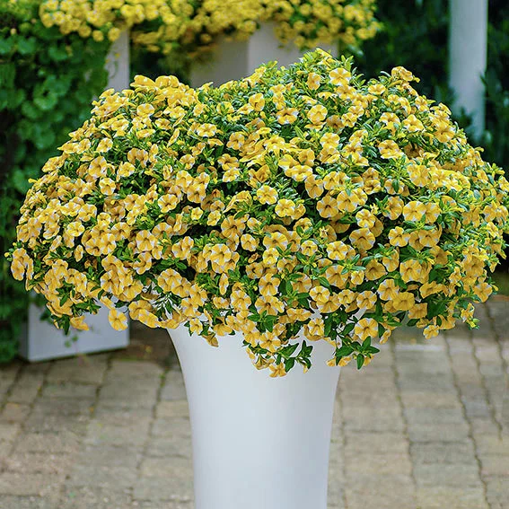 Obwohl das Zauberglöckchen Lemon Slice mit seiner üppigen Blütenpracht wie eine anspruchsvolle Diva wirken könnte, gehört es tatsächlich zu den pflegeleichtesten Sommerblumen. Interessanterweise sind Calibrachoa-Hybriden genetisch eng mit den Petunien verwandt, was ihre ähnliche Erscheinung erklärt. Ursprünglich stammen sie aus Südamerika und wurden erst in den letzten Jahrzehnten populär in der Zierpflanzenzucht. Lemon Slice ist nicht nur eine Zierde für jeden Außenbereich, sondern zieht auch nützliche Insekten wie Bienen und Schmetterlinge an, die zur Biodiversität Ihres Gartens beitragen.