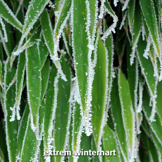 Auch wenn der Bambus grundsätzlich gut frosthart ist, sollten Sie Jungpflanzen in den ersten Jahren durch Zusammenbinden der Halme gegen starke Winterwinde schützen.