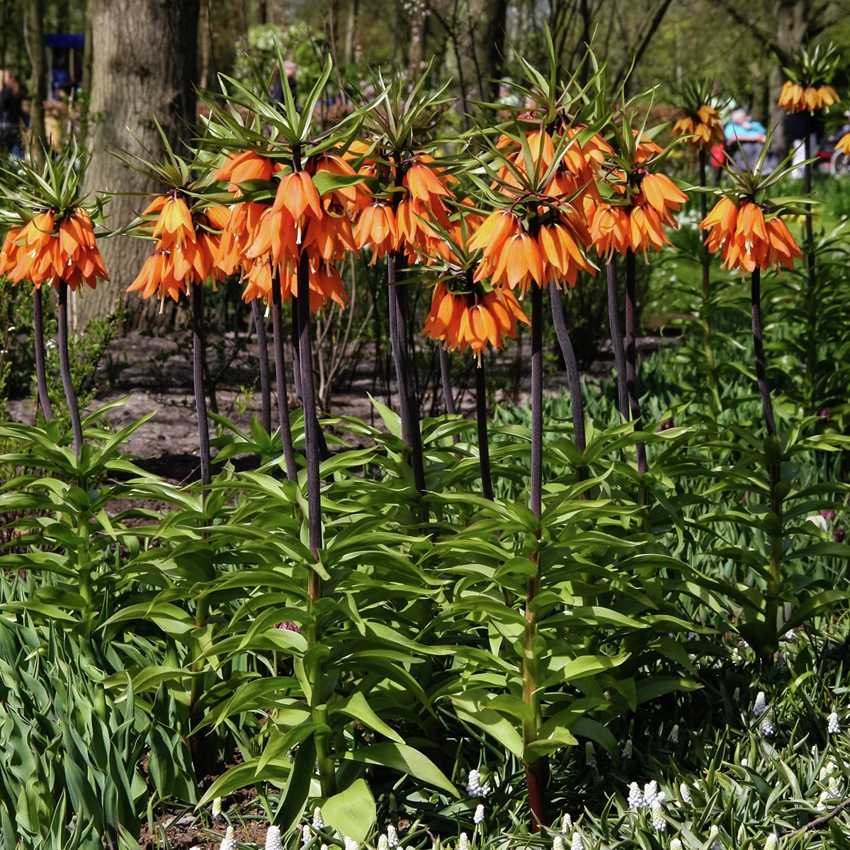 Blütenschaft der Kaiserkrone thront ein Kranz von roten, orangefarbenen oder