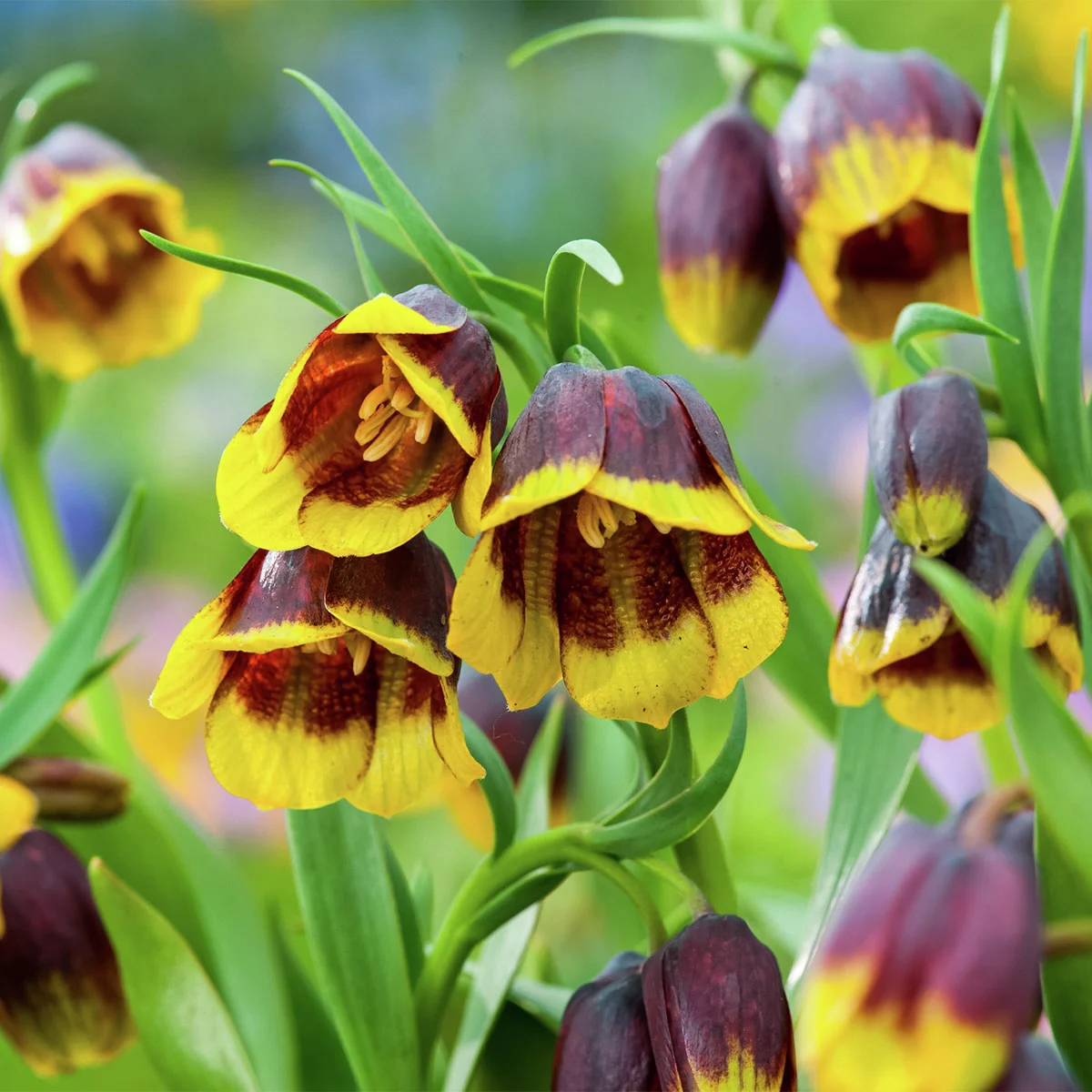 Die imposante und auffällige Glockenlilie Michailovskyi trägt mehrere leuchtende Blütenglöckchen an einem Stiel. Sie ist ein hübsches Kleinod mit kastanienbraunen, zitronengelb gerandeten Blüten. Ideal für Kübel auf Balkon und Terrasse, sie kommt aber auch sehr schön im Gartenbeet zur Geltung. Winterhart und anspruchslos.