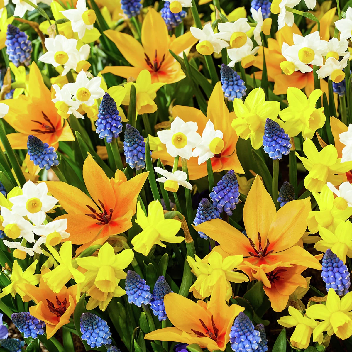 - Mit Narzissen, Traubenhyazinthen und Tulpen