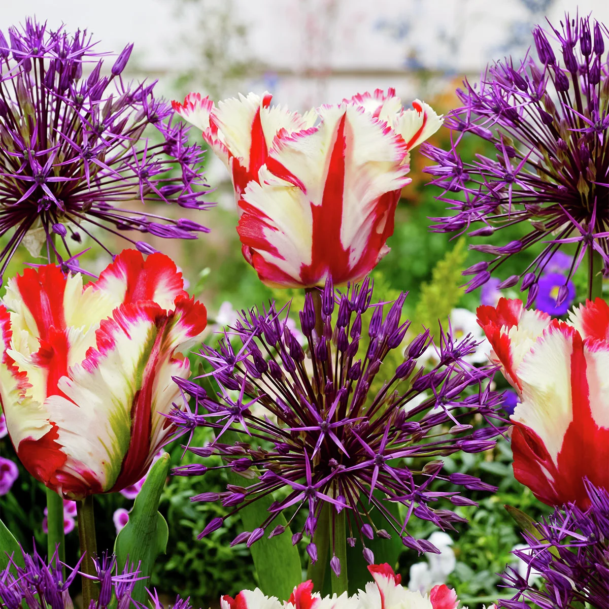 - Mischung aus Papageien-Tulpen und Purpur-Kugellauch