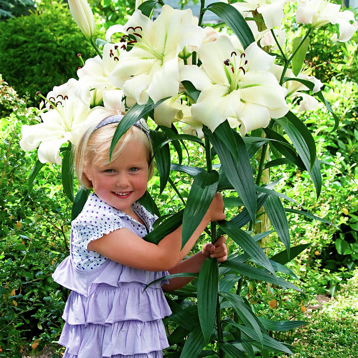 Tipp: OT-Hybriden sind besonders reichblühende, robuste und wüchsige Gartenlilien. Pretty Woman ist eine edle Lilie mit riesengroßen, creme-weißen Blüten die wochenlang erscheinen. Sie ist mit leichtem Winterschutz aus Kompost, Laub oder Reisern winterhart und blüht jedes Jahr aufs Neue.