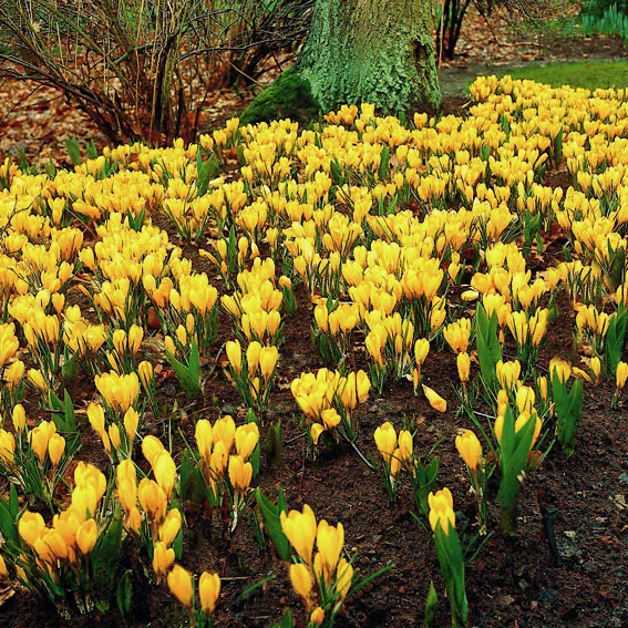 Tipp: Der großblumige große gelbe Frühlingskrokus liebt einen im Frühjahr feuchten und im Sommer eher trockenen Standort. Er ist winterhart und blüht jedes Jahr aufs Neue.