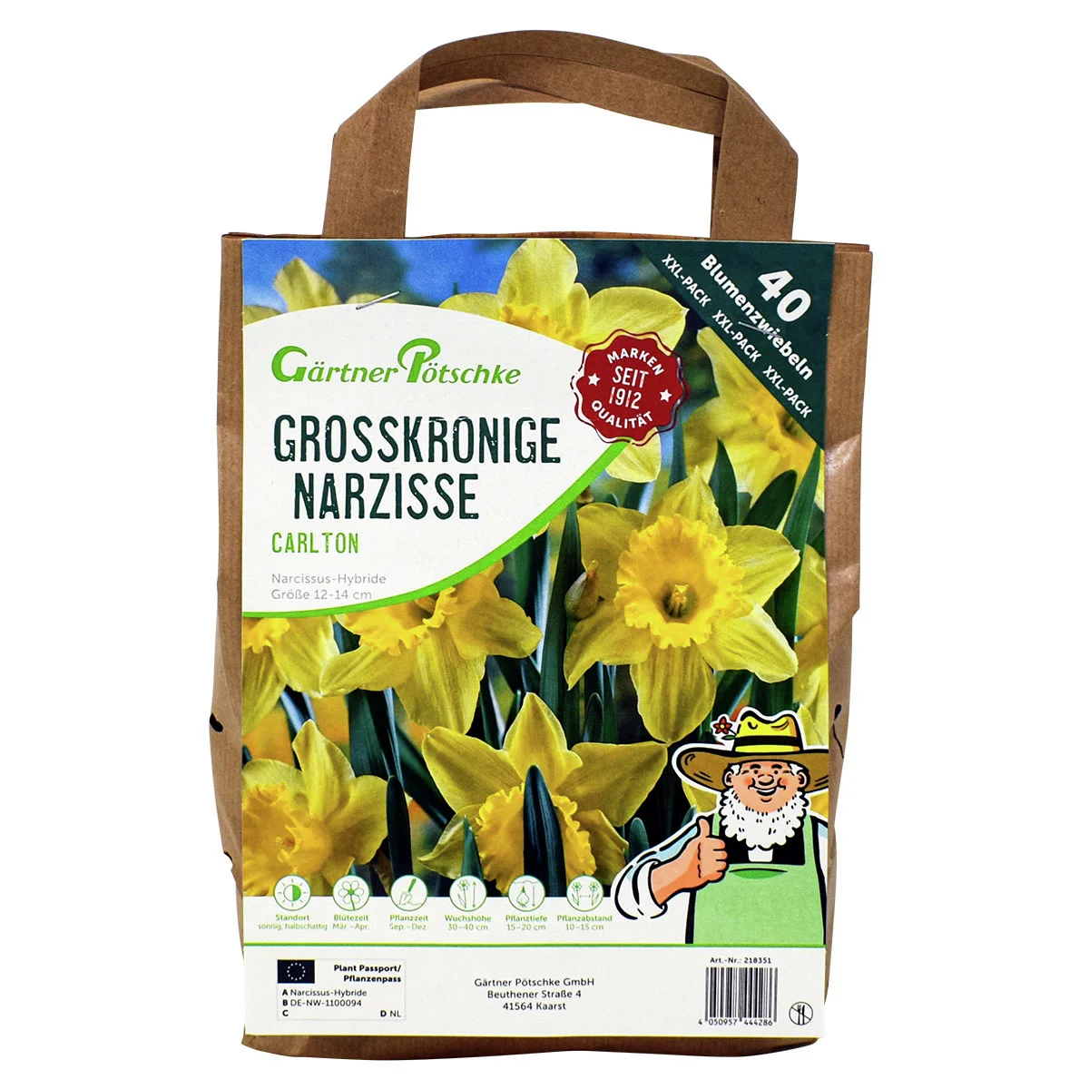 Um das Osterfest erfreut Sie Carlton mit ihren großen, strahlend gelben Trompetenblüten! Dieser typische Frühlingsblüher, der sich verwildernd oft auch in Parks oder Gärten findet, hat sich in den vergangenen Jahren zur am häufigsten gepflanzten Narzissen-Sorte entwickelt. Vielleicht auch bald in Ihrem Garten!?