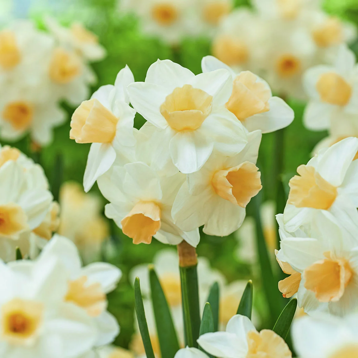 Üppige, runde Blütentrauben sind das Markenzeichen dieser wirklich außergewöhnlichen Narzisse. Gleich mehrere der intensiv und herrlich süß duftenden Blüten zeigen sich hier pro Stiel. Die weiße sternförmige Hauptkrone wird dabei von einer orangenen Nebenkrone frühlingshaft komplettiert. Kapiti Peach wächst schön kompakt und eignet sich ideal für Töpfe auf Terrasse und Balkon sowie für den Schnitt.