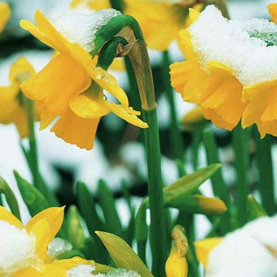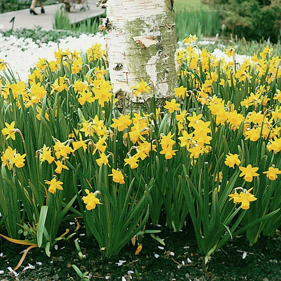 Tipp: Die gelbe, stets zwei oder mehr Blüten je Schaft bildende Tete a Tete gehört zu der Gruppe der Cyclamineus-Narzissen. Bei diesen ist der Blütenkranz der typischen Narzissenblüte ähnlich den Alpenveilchen nach hinten zurückgeschlagen. Cyclamineus-Narzissen sind anspruchslos, winterhart und verwildern an ihnen zusagenden Standorten gerne.