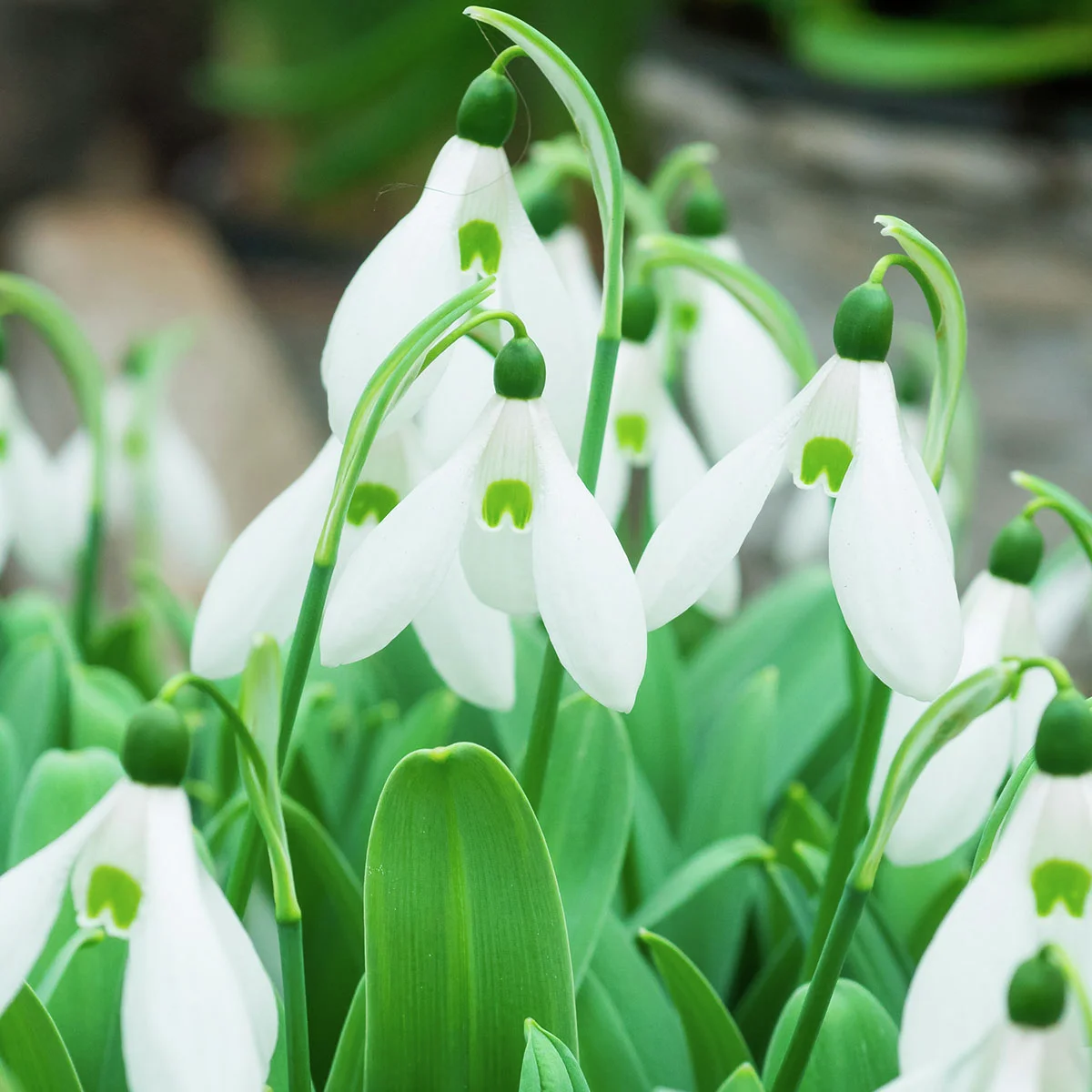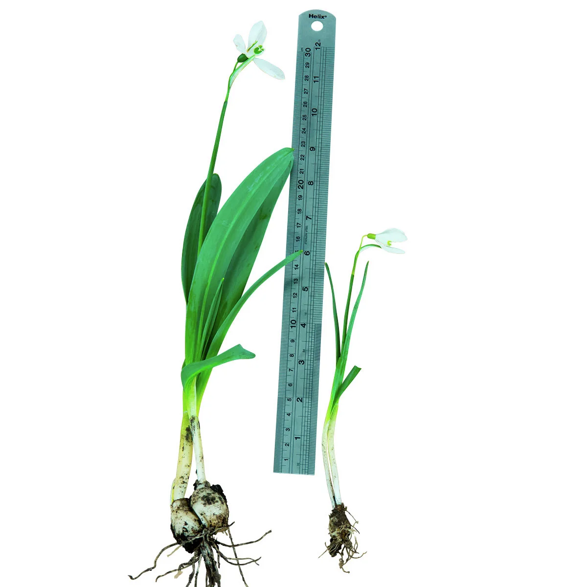 Das Riesen-Schneeglöckchen Mount Everest ist besonders großblumig sowie wüchsig und präsentiert sich mit schönem kräftigem Laub. Außerdem wird es im Gegensatz zu dem normalen Schneeglöckchen bis zu 30 cm hoch. An zusagenden Standorten verwildert es gerne und überzeugt durch Robustheit und lange Lebensdauer.