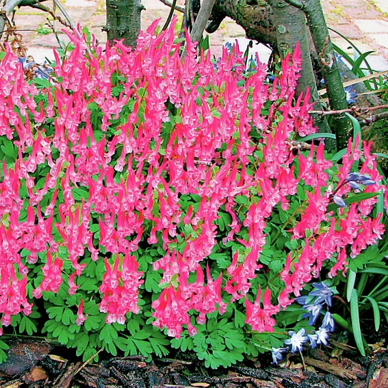 Beim Pflanzen am besten zu kleinen Gruppen zusammensetzen, Lerchensporn eignet sich auch zur Unterpflanzung unter Laubgehölzen.