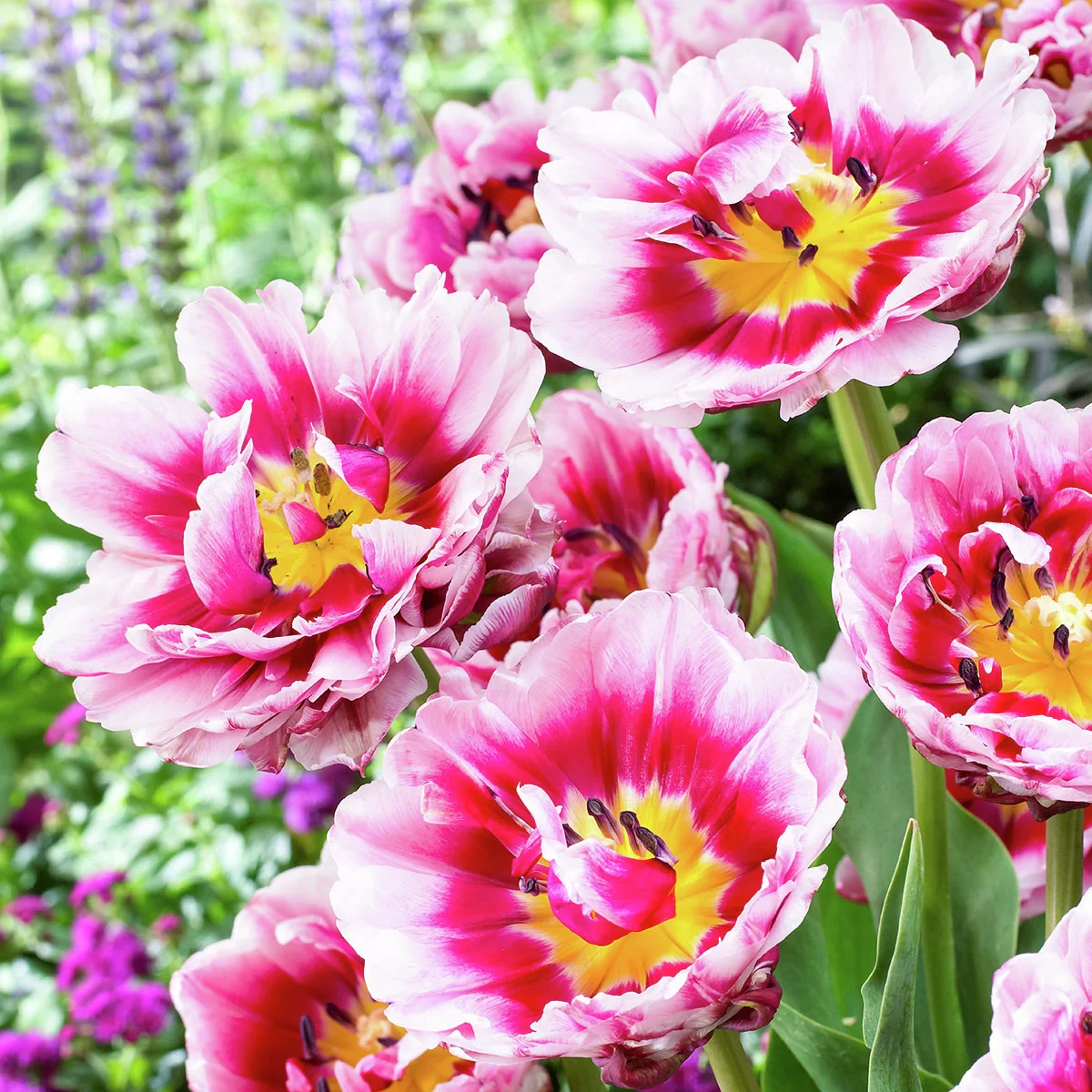 Der beste Beweis dafür ist Dazzling Desire. Diese Tulpe zeigt riesige doppelte Blüten, die man einfach haben muss! Die Flammen in Rot bilden einen aufregenden Kontrast zu den weiß-rosa Blütenrändern. Im Inneren zeigt sie dann noch Ihr gelbes Herz. Eine einzigartige Schönheit für Beet, Kübel und Schnitt.