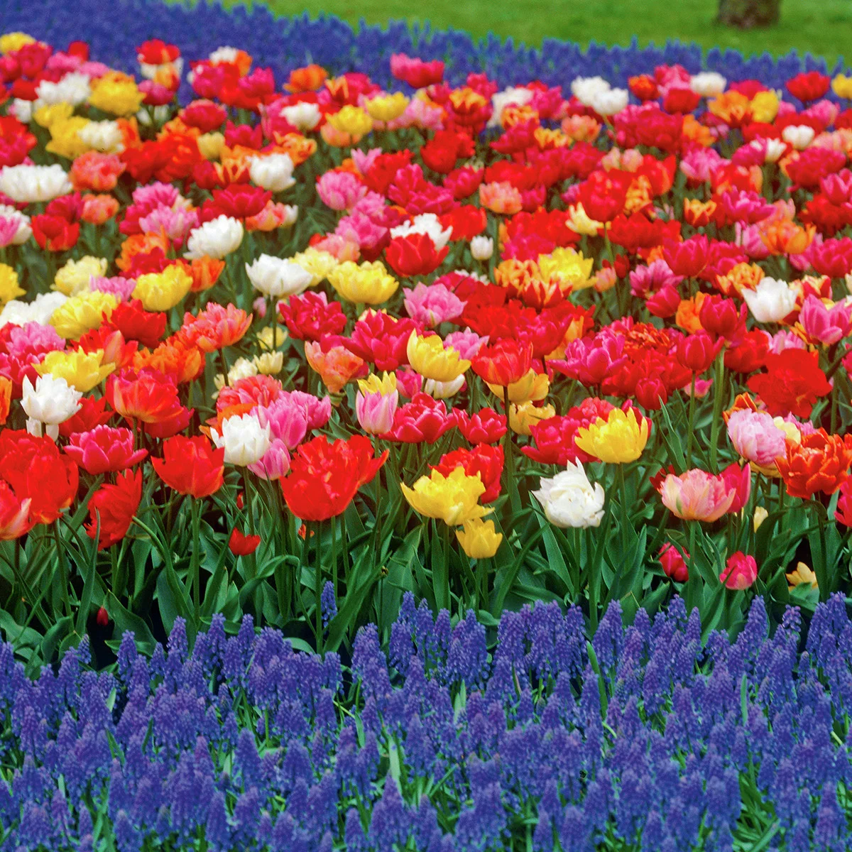 Die Blütezeit fällt in den April und so ist es gut, dass sie durch ihren kompakten Wuchs den zuweilen heftigen Wetterwechseln nicht allzu sehr ausgesetzt sind. Gerade die Murillo-Tulpen sind eine hervorragende Wahl für Pflanzgefäße und geräumige Balkonkästen. Eine schöne Mischung in mindestens fünf Farben.