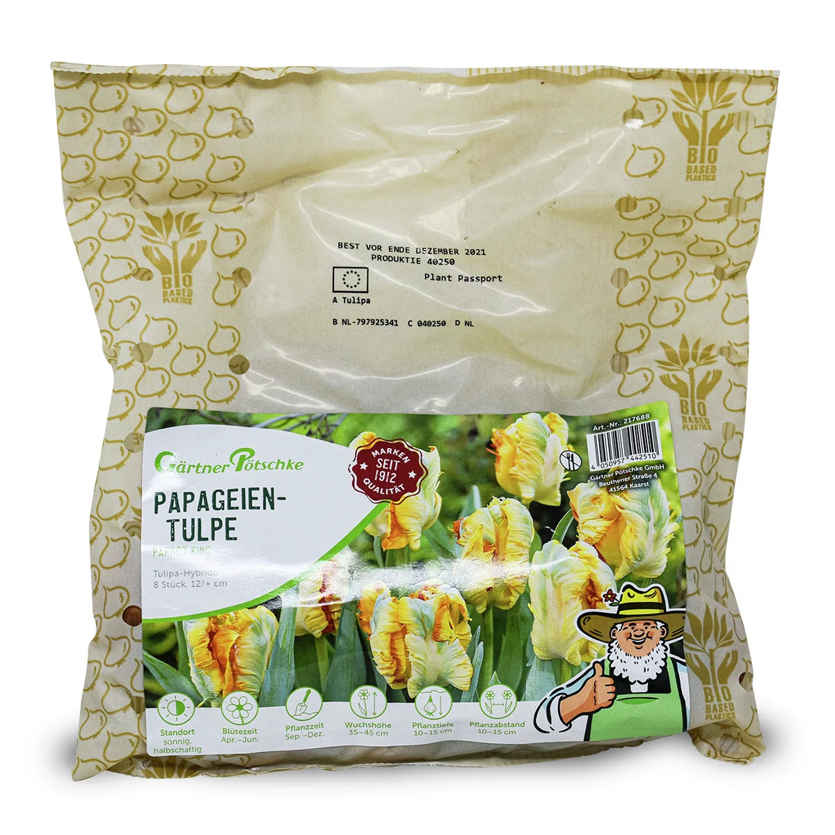 Tipp: Die auffallenden Papageien-Tulpen mit ihren verspielt gewellten, gefransten und verdrehten Blütenblättern sind besonders faszinierende, von April bis Juni blühende Beet- und Schnitttulpen. Sie sind winterhart, ihre Blühfreudigkeit lässt aber ab dem zweiten Frühling rasch nach. Deshalb empfehle ich, diese Tulpen lieber jedes Jahr neu zu pflanzen. Tulpen lieber nur alle 3-4 Jahre am gleichen Platz pflanzen, am schönsten wirken sie in kleinen Gruppen zusammengepflanzt. Eine Düngung mit Gärtner Pötschke Blumenzwiebel-Dünger im zeitigen Frühjahr, sobald sich die ersten Blätter zeigen, fördert eine kräftige und langanhaltende Blüte.