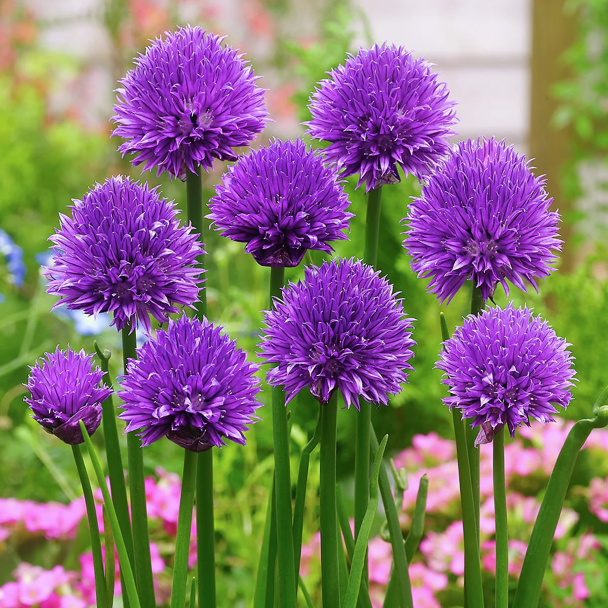 Eine außergewöhnliche Zierpflanze mit Zusatznutzen als Küchenkraut ist der Purpur-Schnittlauch Forescate.