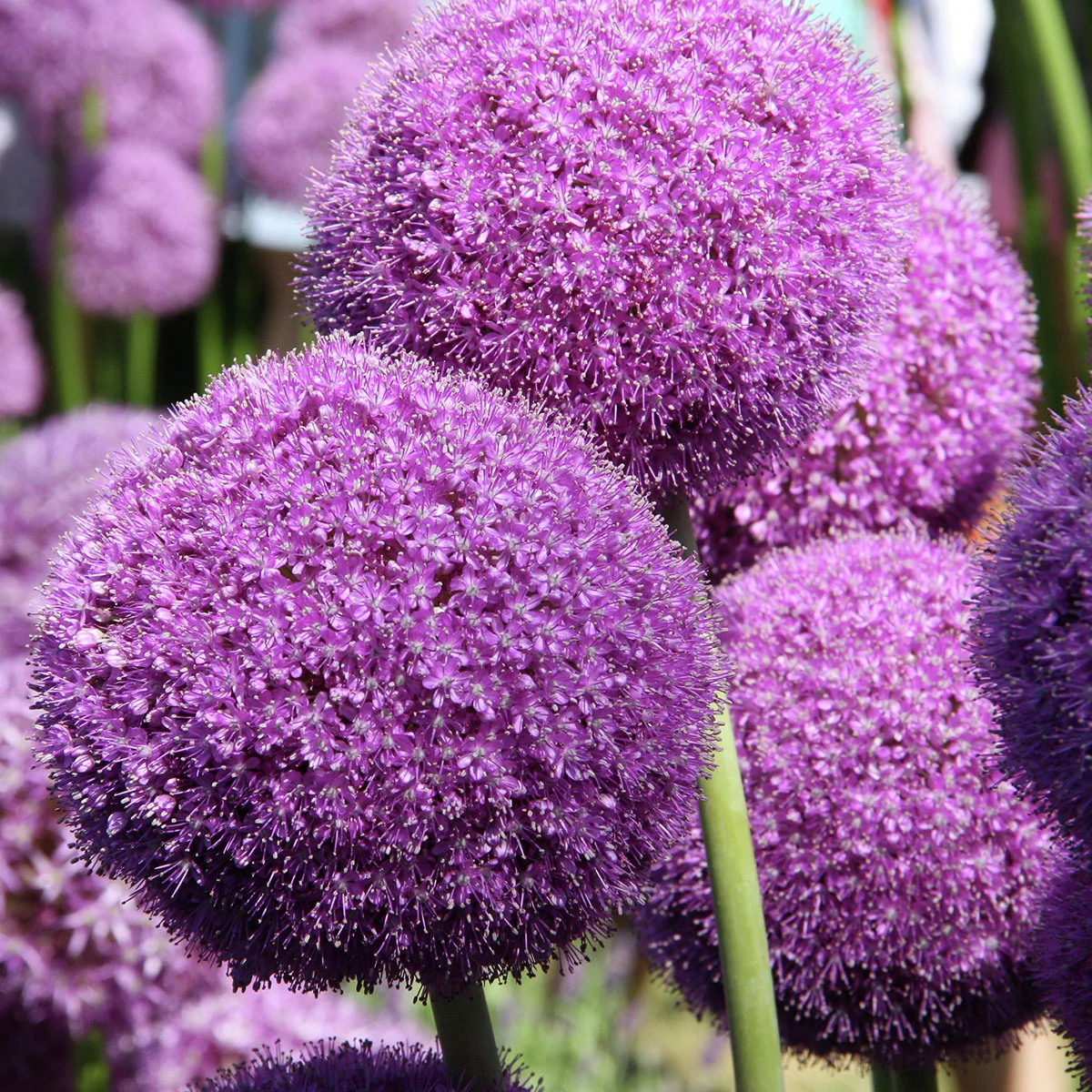 Bis zu 1,70 m hoch werden die Stiele dieses Riesen-Zierlauchs. Seine Blüten erreichen einen Durchmesser von bis zu 20 cm.