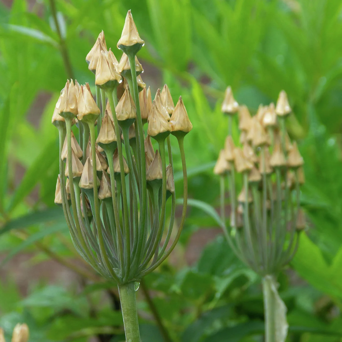 Recht spät, aber nahezu magisch präsentieren die sternförmigen Einzelblüten des bulgarischen Schmucklauchs ihre zarte Färbung, ehe sie sich in einem Feuerwerk der Eleganz zur kugelrunden Doldenblüte mit exotischem Flair zusammensetzen.