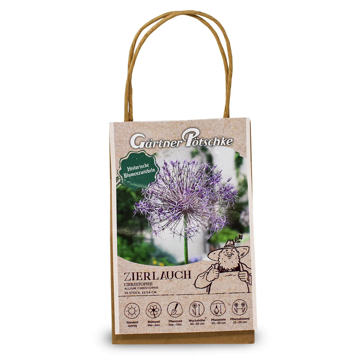 Der Zierlauch Christophii liebt einen sonnigen und geschützten Platz. Er ist mit leichtem Winterschutz aus Kompost, Laub oder Reisern winterhart und blüht jedes Jahr aufs Neue.