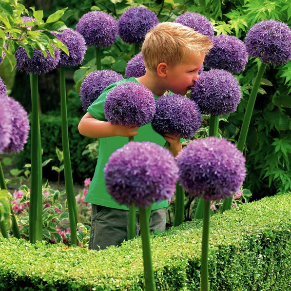 Ein spektakulärer Blickfang für jeden Garten: Die dunkelvioletten Blütenbälle dieses stabilen und haltbaren Kugellauchs begeistern mit einer Größe von 20 cm und mehr. Und im Gegensatz zu anderen ZIerlauchsorten behält sein Laub die grüne Farbe.