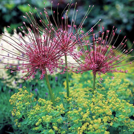 Tipp: Die verschieden langen Blütenstiele machen die große Blütendolde des Schubertii-Zierlauches zu einem ungewöhnlichen Schmuck für Steingärten, Beete und Töpfe. Der Zierlauch Schubertii liebt einen sonnigen und geschützten Platz. Er ist mit leichtem Winterschutz aus Kompost, Laub oder Reisern winterhart und blüht jedes Jahr aufs Neue.