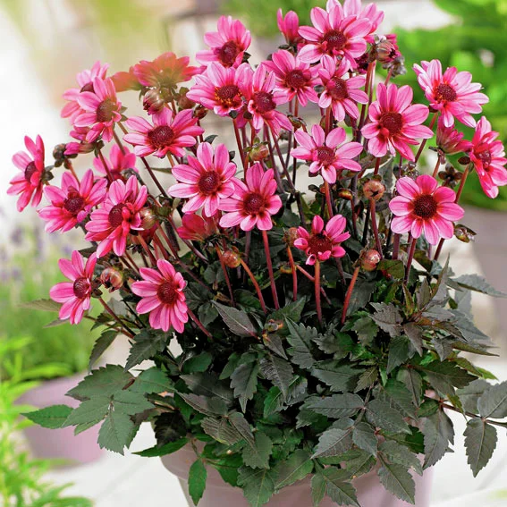 Tipp: Dark Angel ist eine niedrige, dicht verzweigt wachsende, einfach blühende Dahlie speziell für Kästen und Töpfe. Im Sommer verblühte Blütenköpfe regelmäßig zur Förderung neuer Blüten ausputzen. Zum Überwintern die Dahlien-Knollen im Herbst vor den ersten strengen Frösten handbreit über dem Boden zurückschneiden, vorsichtig ausgraben, anhaftende Erde leicht abklopfen und in einem kühlen, luftigen Raum bis zum Frühjahr lagern.