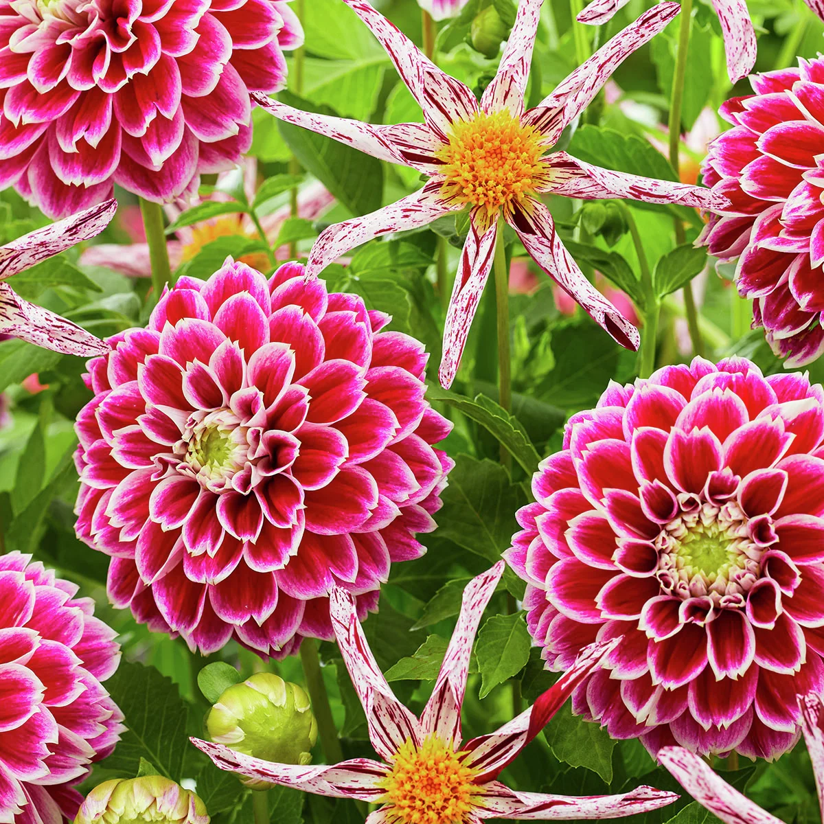 Diese reichblühende Dahlie sorgt für Kontraste.