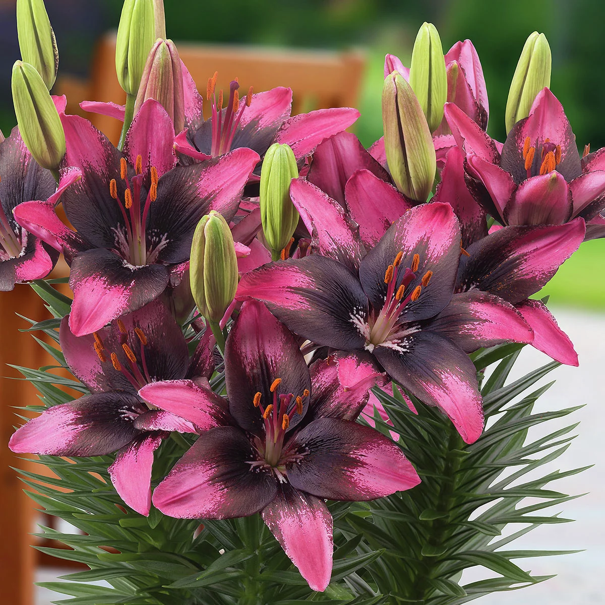 Tipp: Die Gruppe der Asiatischen-Lilien mit ihren vielen aufrecht stehenden Blüten an stabilen Stängeln gehört zu den beliebtesten Garten- und Schnitt-Lilien. Sie sind mit leichtem Winterschutz aus Kompost, Laub oder Reisern winterhart und blühen jedes Jahr aufs Neue.