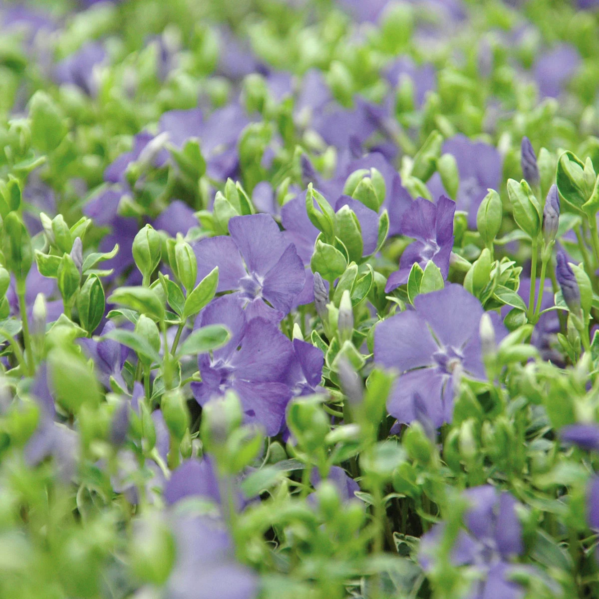 Das blau-violette Immergrün Ralph Shugert bildet lange, sich bewurzelnde Ausläufer und kann so schnell ganze Flächen begrünen. Aus seinem glänzenden und dem weiß-panaschierten Laub, leuchten im Frühjahr zahlreiche kleine Blüten hervor und im Sommer über ist es immer wieder für eine Nachblüte gut.