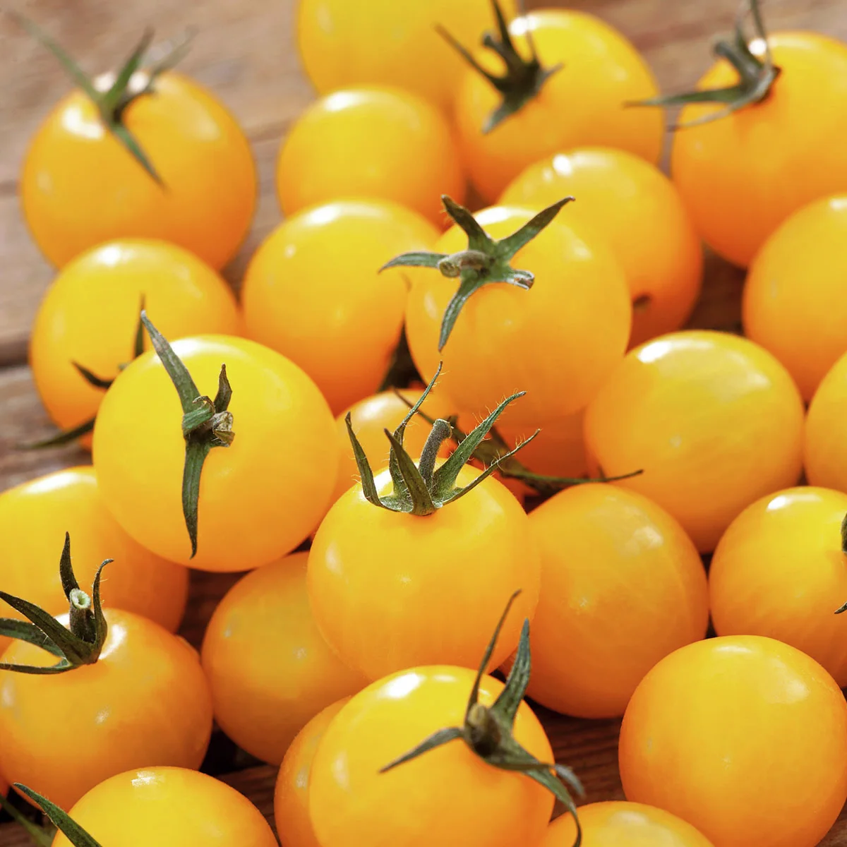 Cherrytomaten, die aufgrund Ihrer Größe auch Kirschtomaten genannt werden, haben sehr kleine Früchte, die es in roten, gelben und orangenen Variationen gibt. Sie werden häufig mit Cocktailtomaten gleichgesetzt, allerdings sind Cherrytomaten oftmals süßer und kleiner als die Cocktailtomaten. Cherrytomaten weisen einen Wassergehalt von knapp 95% auf und haben gerade einmal knapp 15 Kalorien auf 100 Gramm. Sie bestechen durch nennenswerte Mengen an B-Vitaminen, Vitamin E und K, aber auch durch die Menge an Magnesium, Eisen und Kalium.