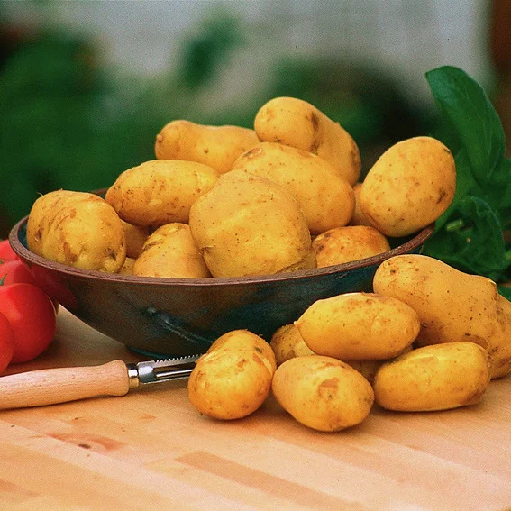 - Frühe Hausgarten-Kartoffel mit länglichen Knollen