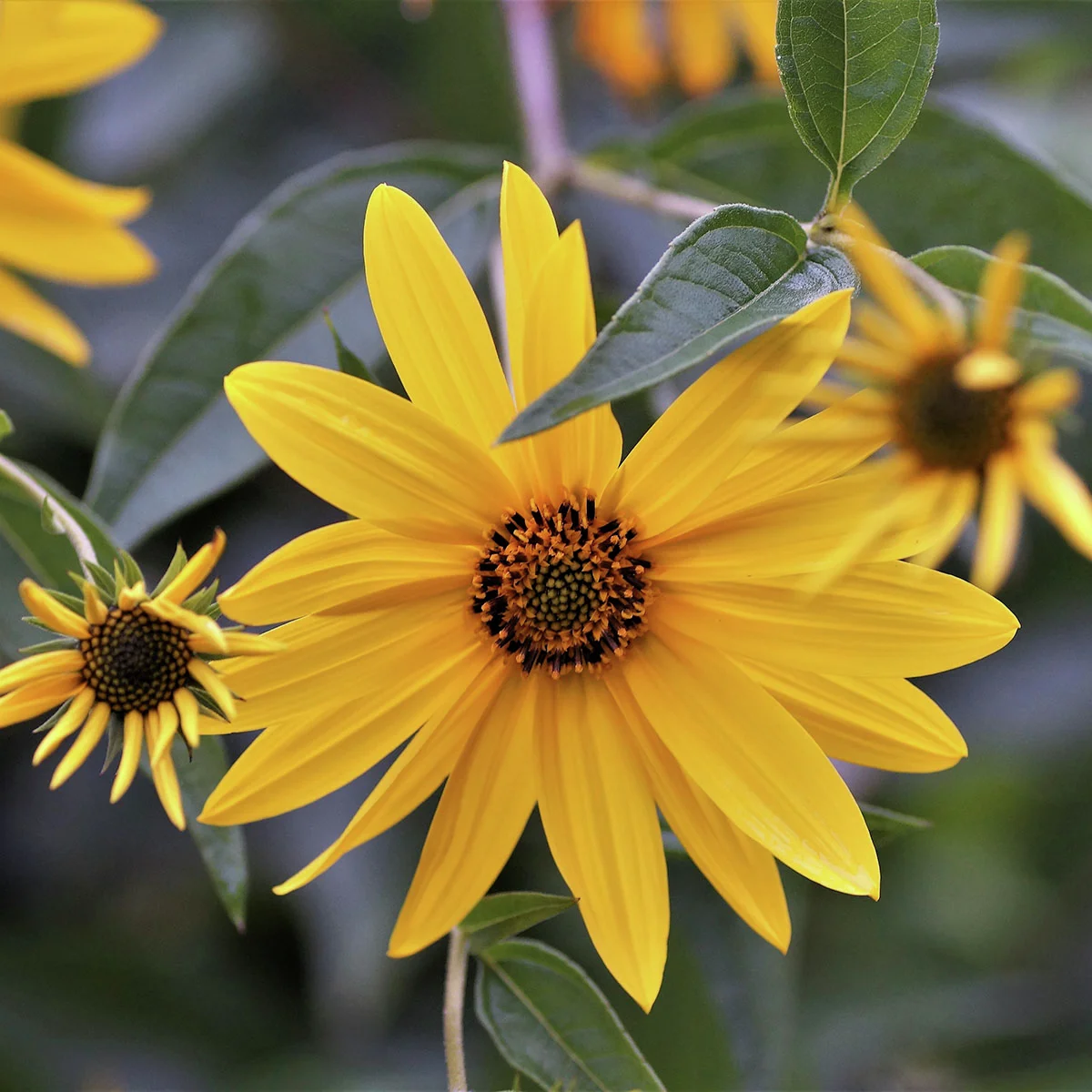 Botanischer Name: Helianthus tuberosus Blattfarbe: grün Fruchtfarbe: braun Erntezeit: Oktober-Dezember Besonderheiten: Bienenweide, Insektenweide